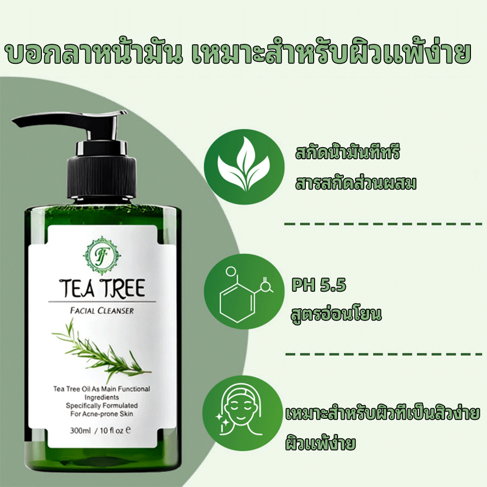 FJ เจลล้างหน้าทีทรี โฟมล้างหน้า PH Balance 5.5 สูตรอ่อนโยน สำหรับคนเป็นสิว และผิวแพ้ง่าย Tea Tree Facial Cleansers 300ml