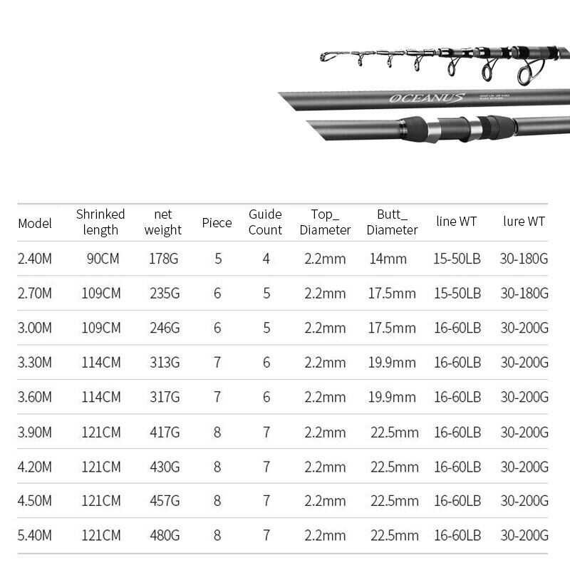 Surf High Carbon Fiber Telescopic Long Shot Fishing Rod 2.4M-5.4M 5/6/7/8 Sections Sea Bass Trout I