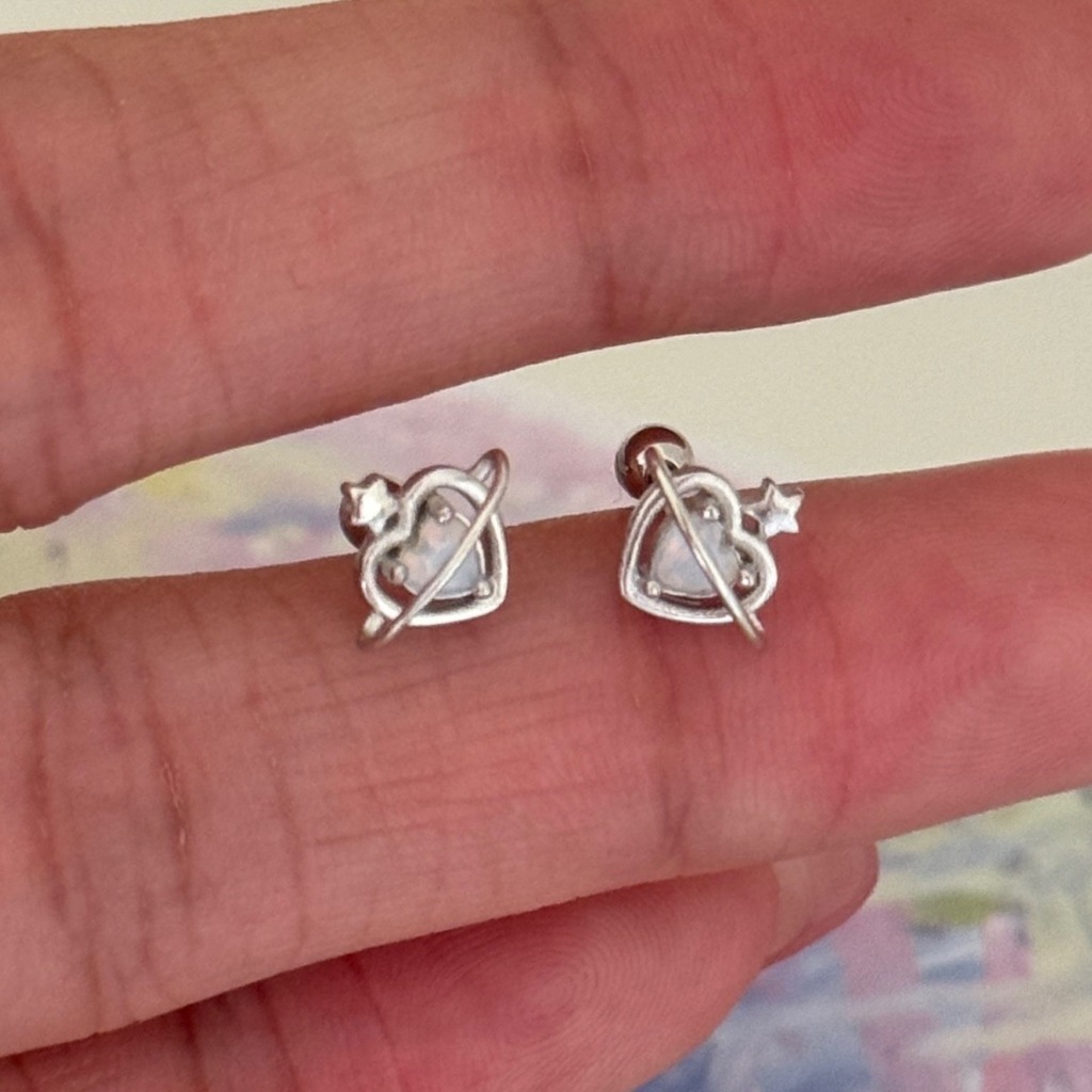Suwann.na ต่างหู ต่างหูเงินแท้ จิว จิวเงินแท้ จิวหัวใจโอปอล เงิน, ทอง