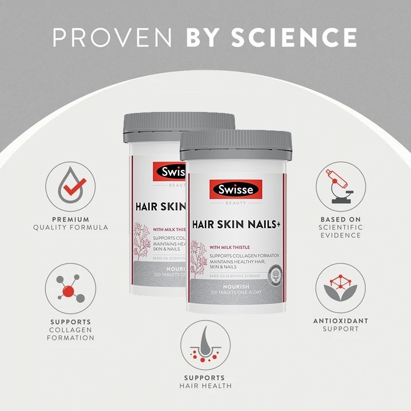 (แพ็คคู่) Swisse Beauty Hair Skin Nails อาหารเสริมบำรุงผม ผิว เล็บ ให้เงางามเปล่งปลั่ง 100 เม็ด x 2 ขวด (EXP:08 2028)