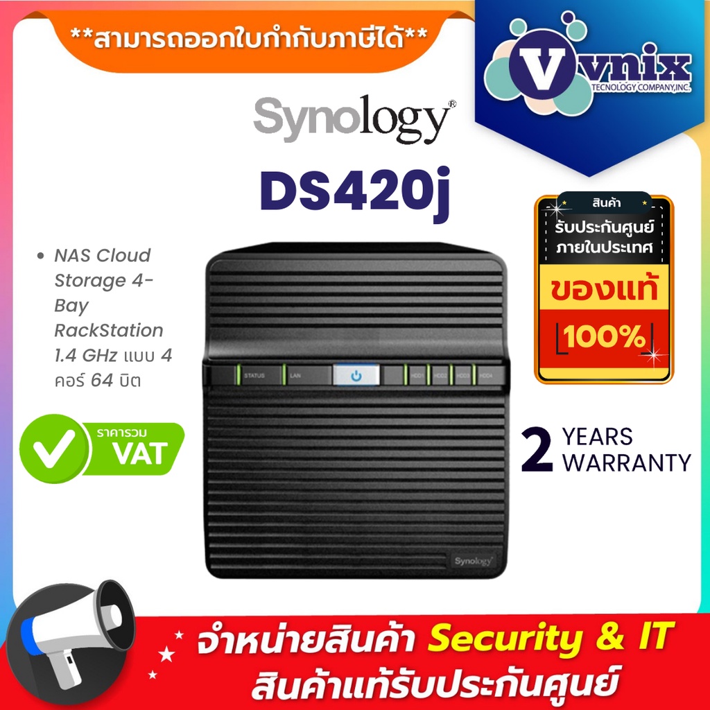 DS420j Synology NAS Cloud Storage 4-Bay RackStation 1.4 GHz แบบ 4 คอร์ 64 บิต By Vnix Group