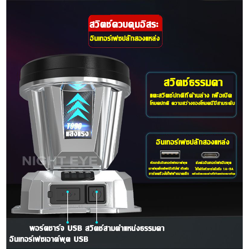T998 ไฟฉายคาดหัว แท้ led กำลังไฟสูง ชาร์จไฟ ส่องแสงระยะ5KM ไฟฉายพกพาแรงสูง