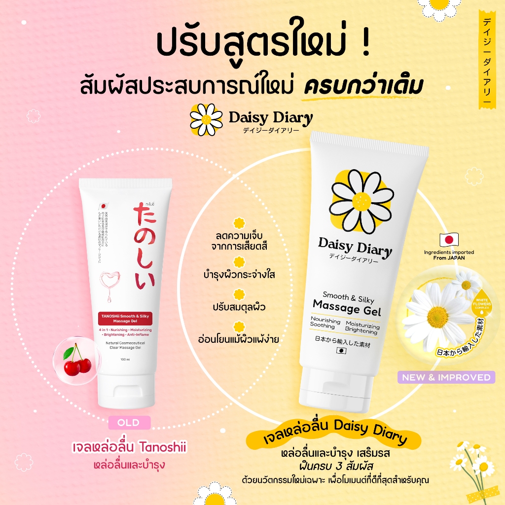 (มีส่งด่วน / ไม่ระบุชื่อสินค้าหน้ากล่อง) เจลหล่อลื่นสูตรสกินแคร์🌼 Daisy Diary by Tanoshii Gel 100ml. แห้งช้า