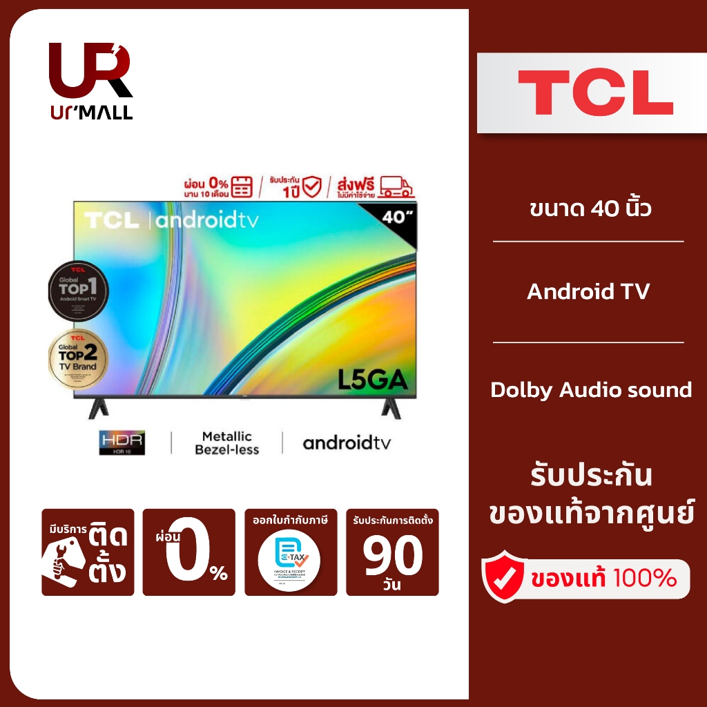 TCL ทีวี 40 นิ้ว Android TV รุ่น 40L5GA จอ FHD1080P/ Android11.0/ Google&Youtube/ Voice Search