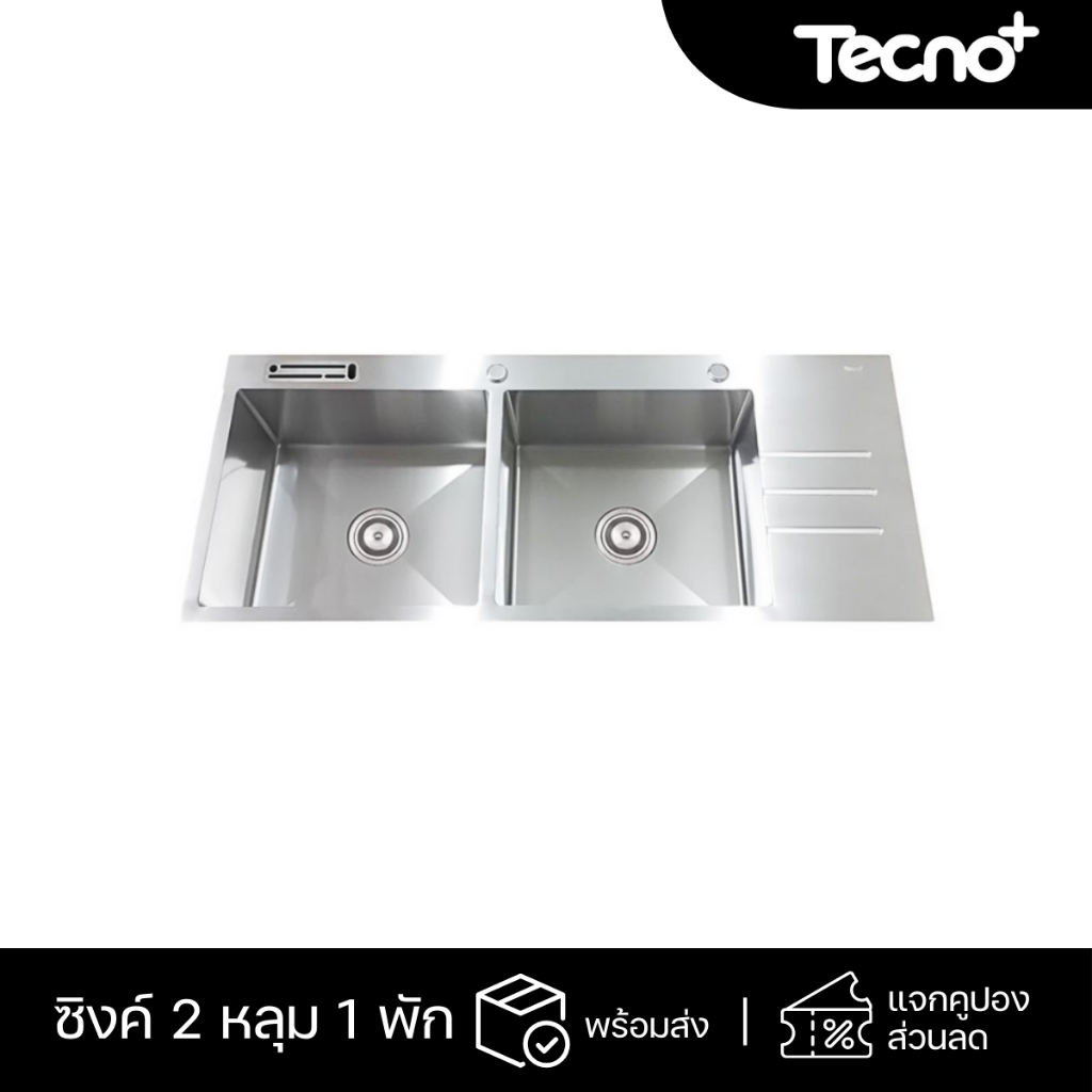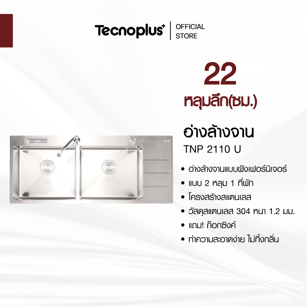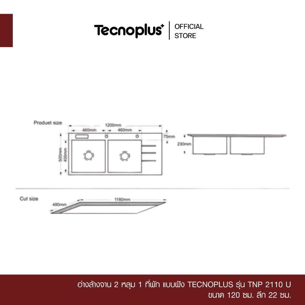 อ่างล้างจาน 2 หลุม 1 ที่พัก แบบฝัง Tecnoplus รุ่น TNP 2110 U ขนาด 120 ซม. ลึก 22 ซม.