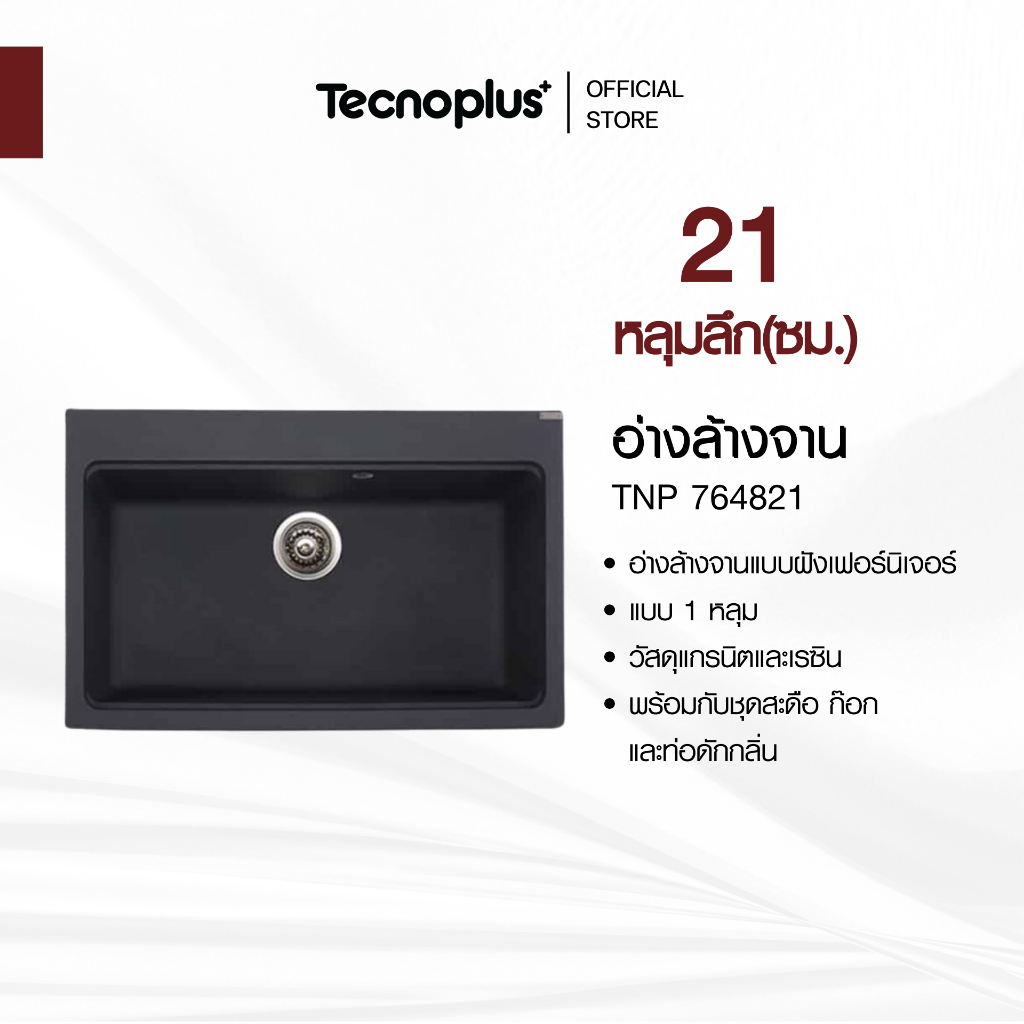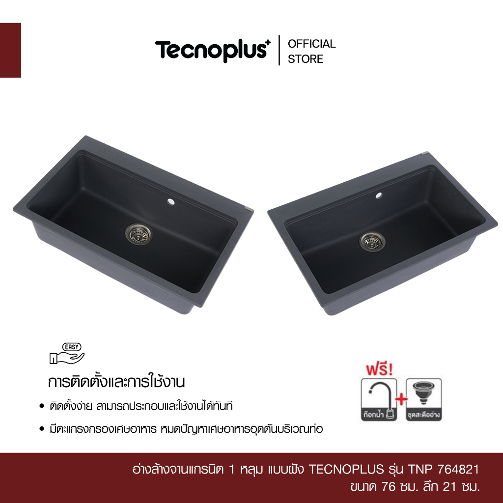 อ่างล้างจานแกรนิต 1 หลุม แบบฝัง Tecnoplus รุ่น TNP 764821 ขนาด 76 ซม. ลึก 21 ซม. แถมฟรีก๊อกซิงค์ สีดำ(ยืน) ZI18-B