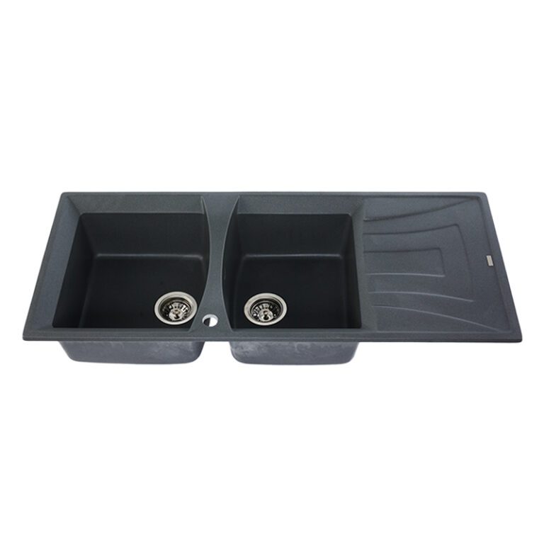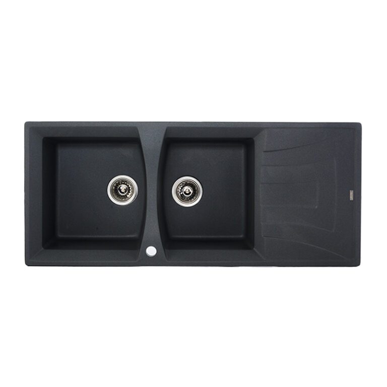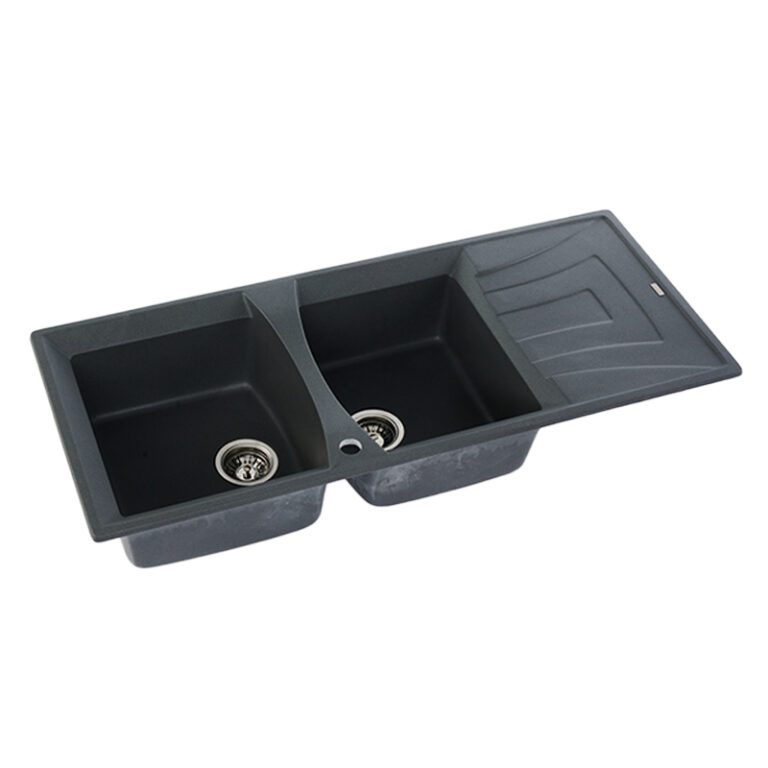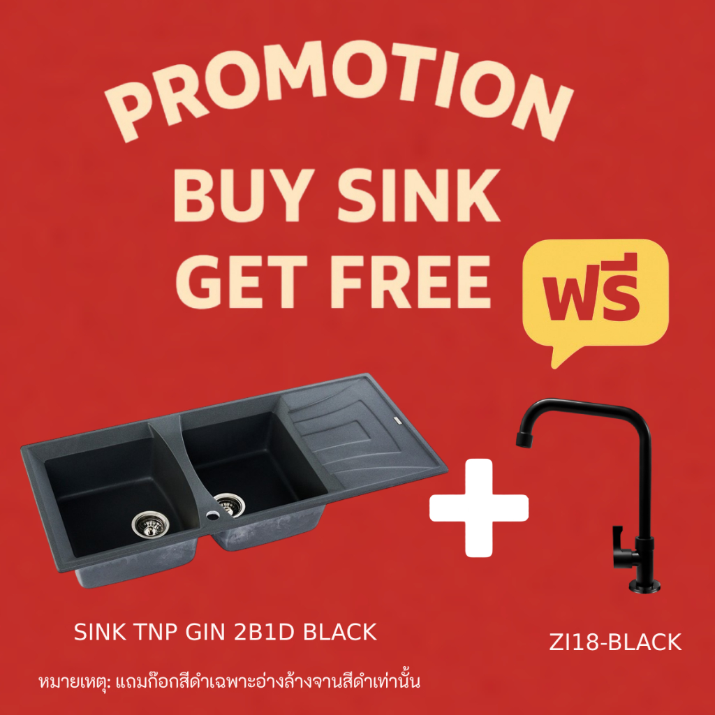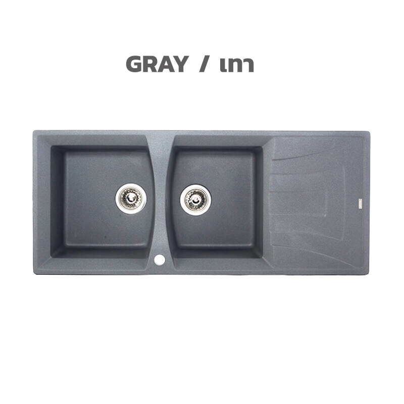 TECNOPLUS อ่างล้างจาน 2 หลุม 1 ที่พัก แกรนิต หลุมลึก 20 ซม. รุ่น TNP GIN 2B1D