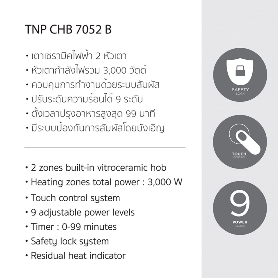 TECNOPLUS เตาเซรามิคไฟฟ้า 2 หัวเตา รุ่น TNP CHB 7052 B