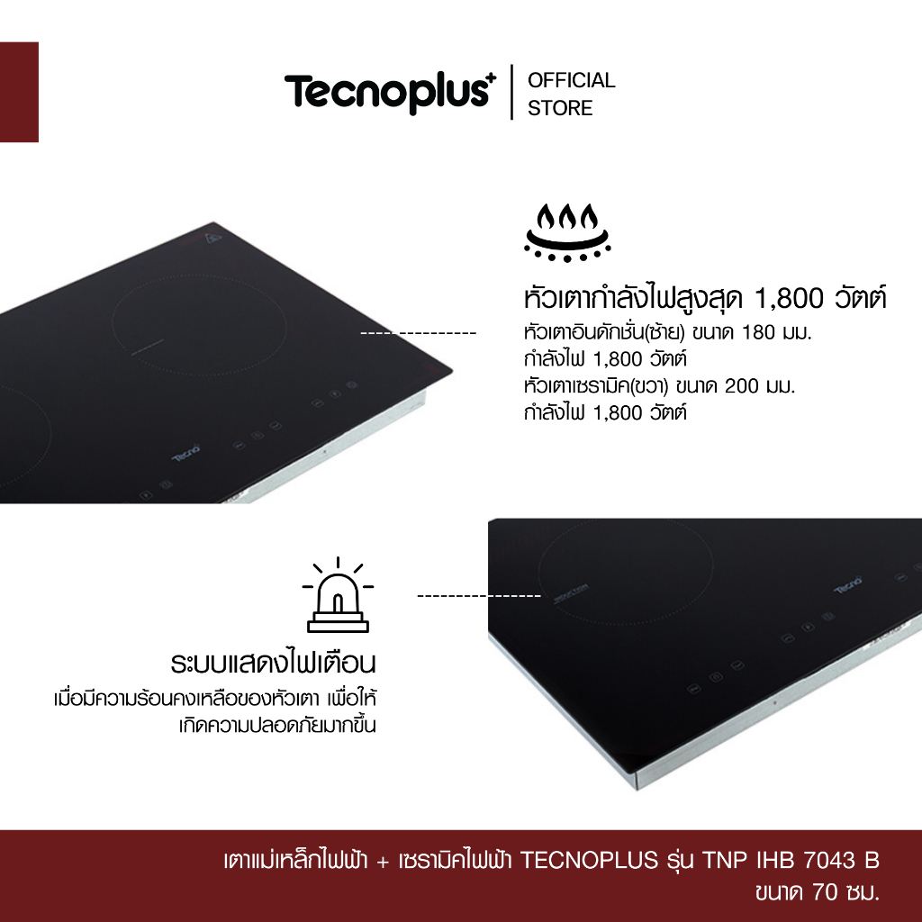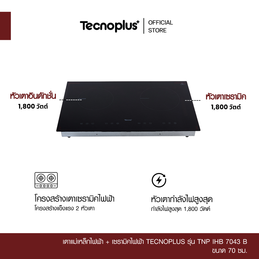 เตาแม่เหล็กไฟฟ้า + เซรามิคไฟฟ้า Tecnoplus รุ่น TNP IHB 7043 B