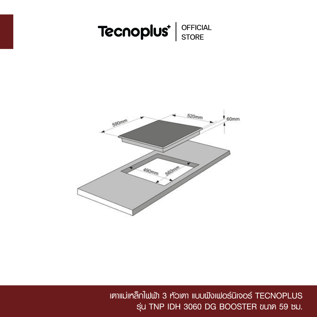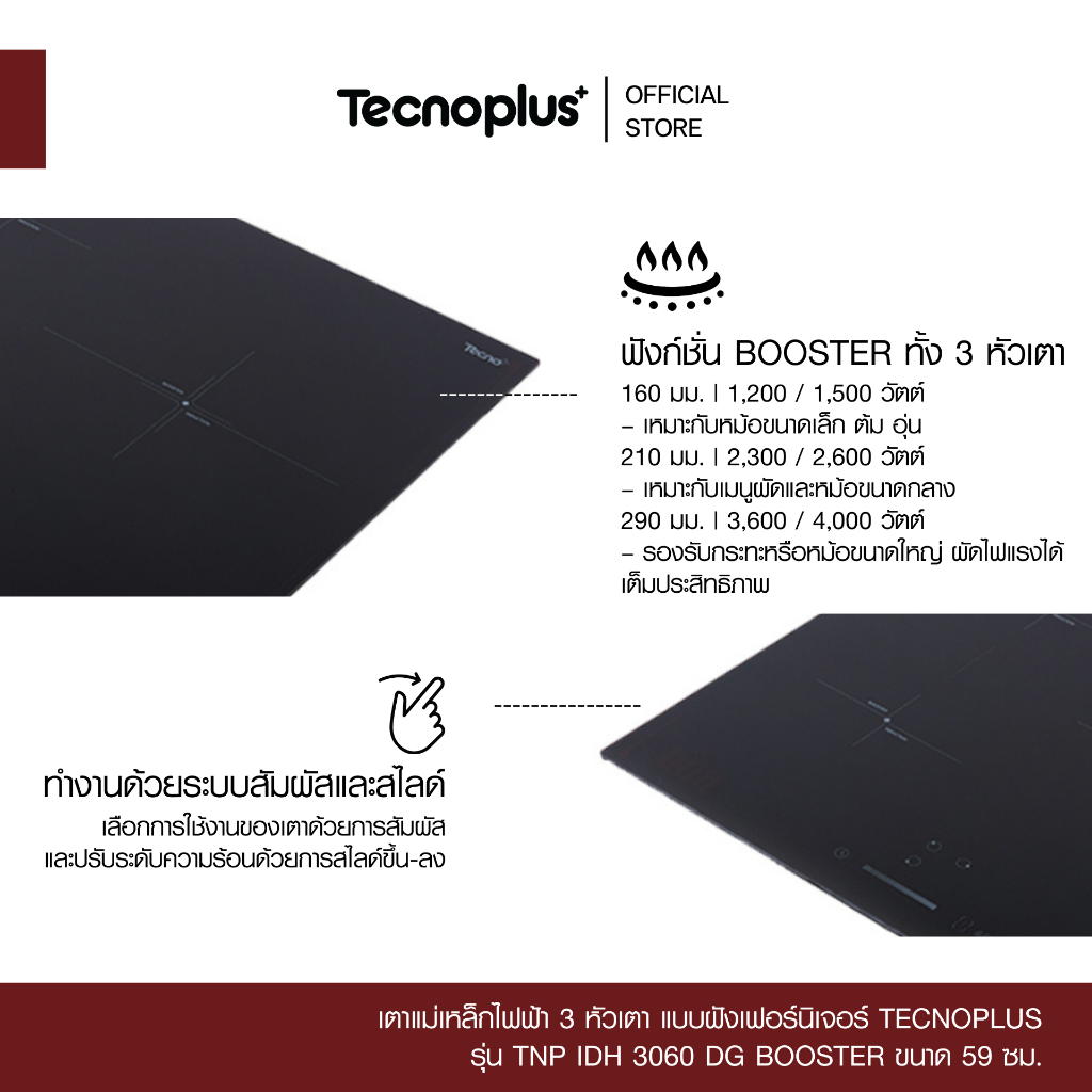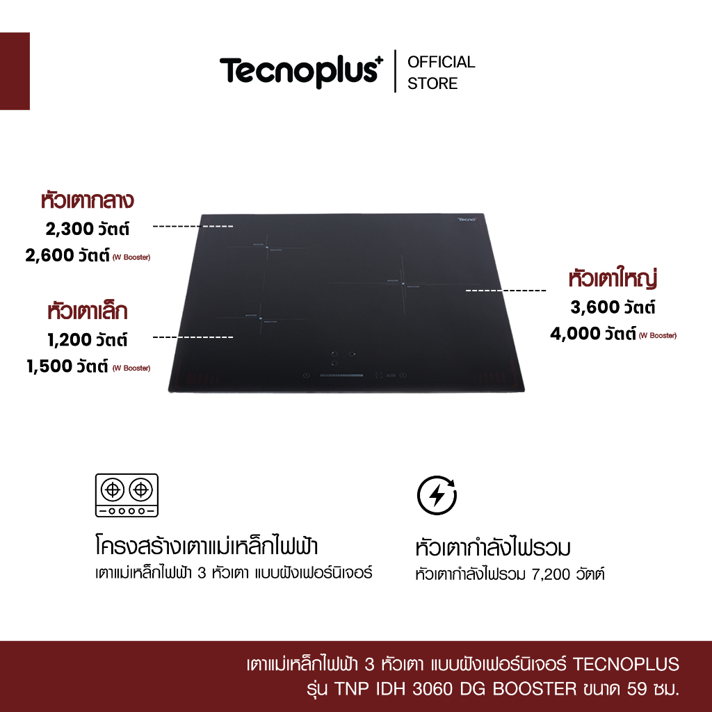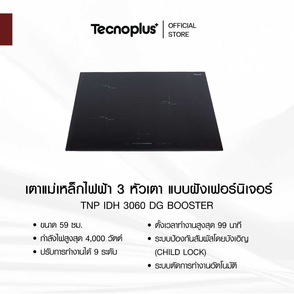 เตาแม่เหล็กไฟฟ้า 3 หัวเตา แบบฝังเฟอร์นิเจอร์ Tecnoplus รุ่น TNP IDH 3060 DG BOOSTER