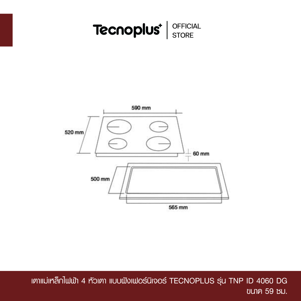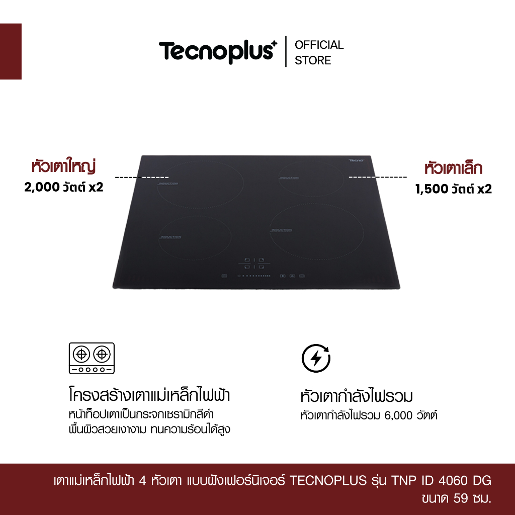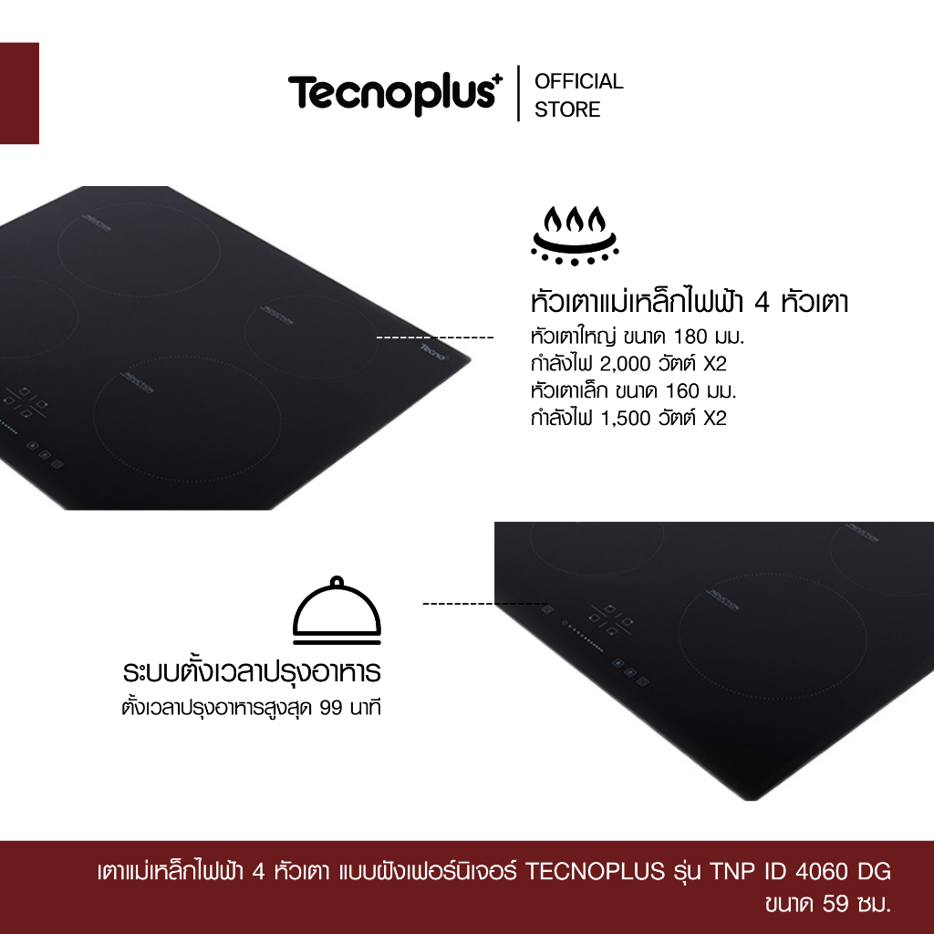 เตาแม่เหล็กไฟฟ้า 4 หัวเตา แบบฝังเฟอร์นิเจอร์ Tecnoplus รุ่น TNP ID 4060 DG