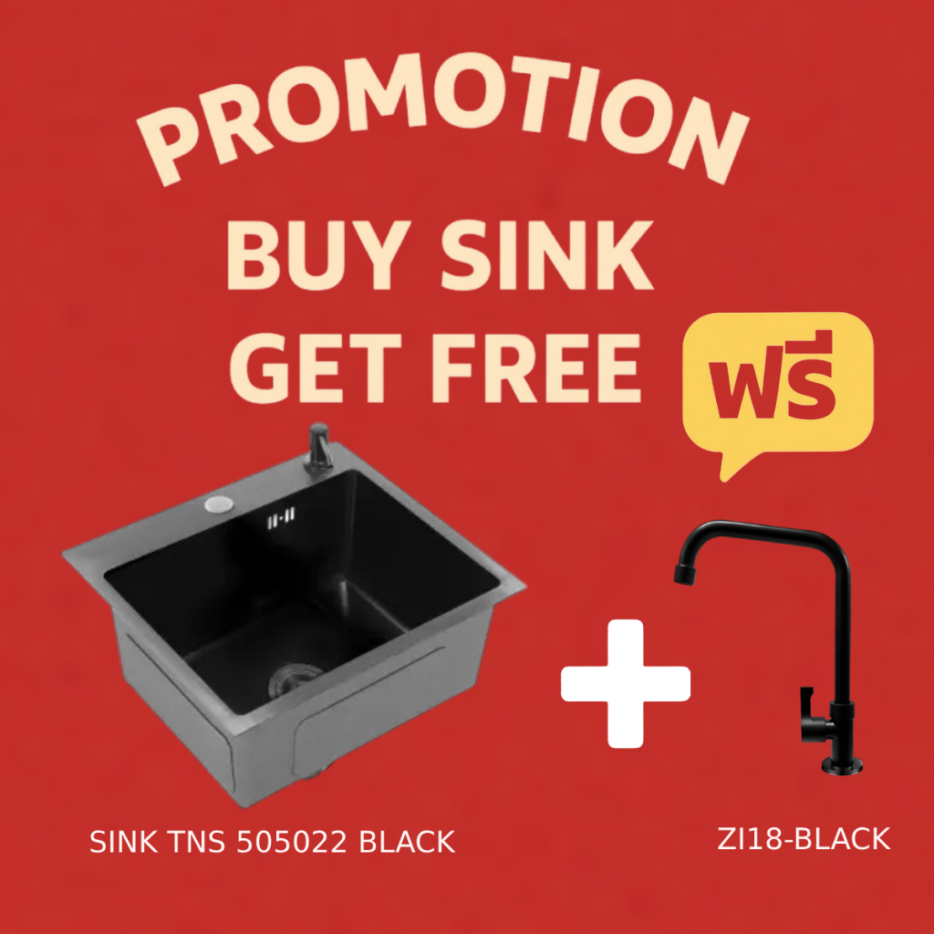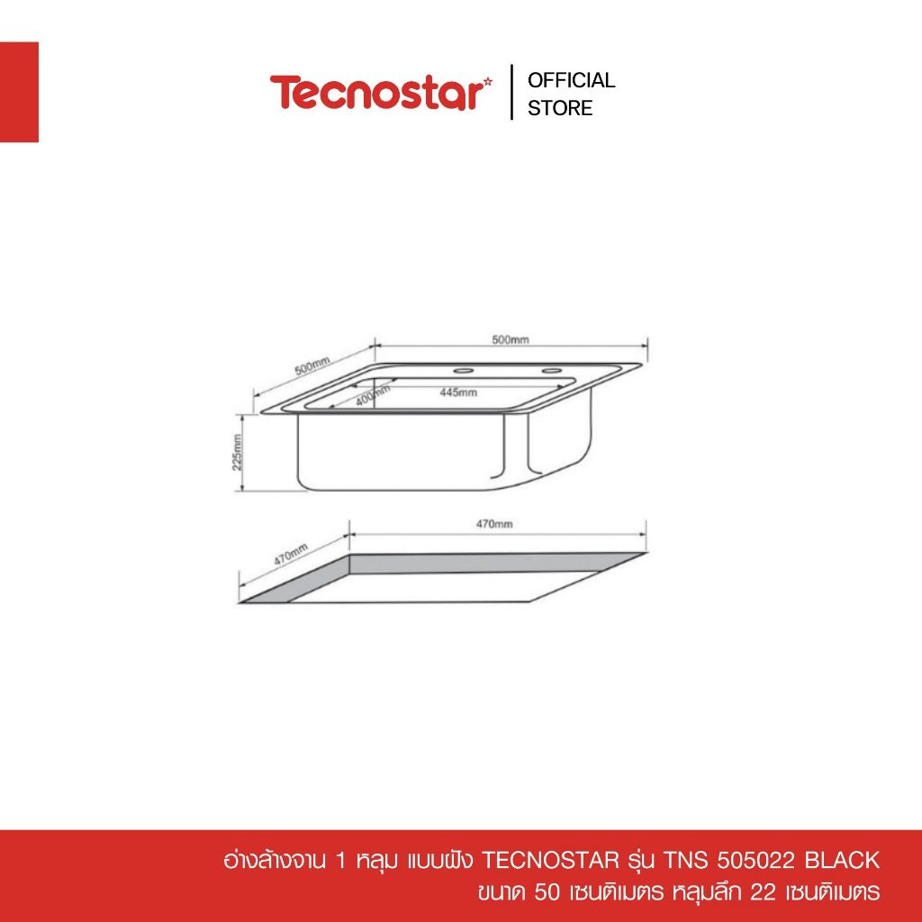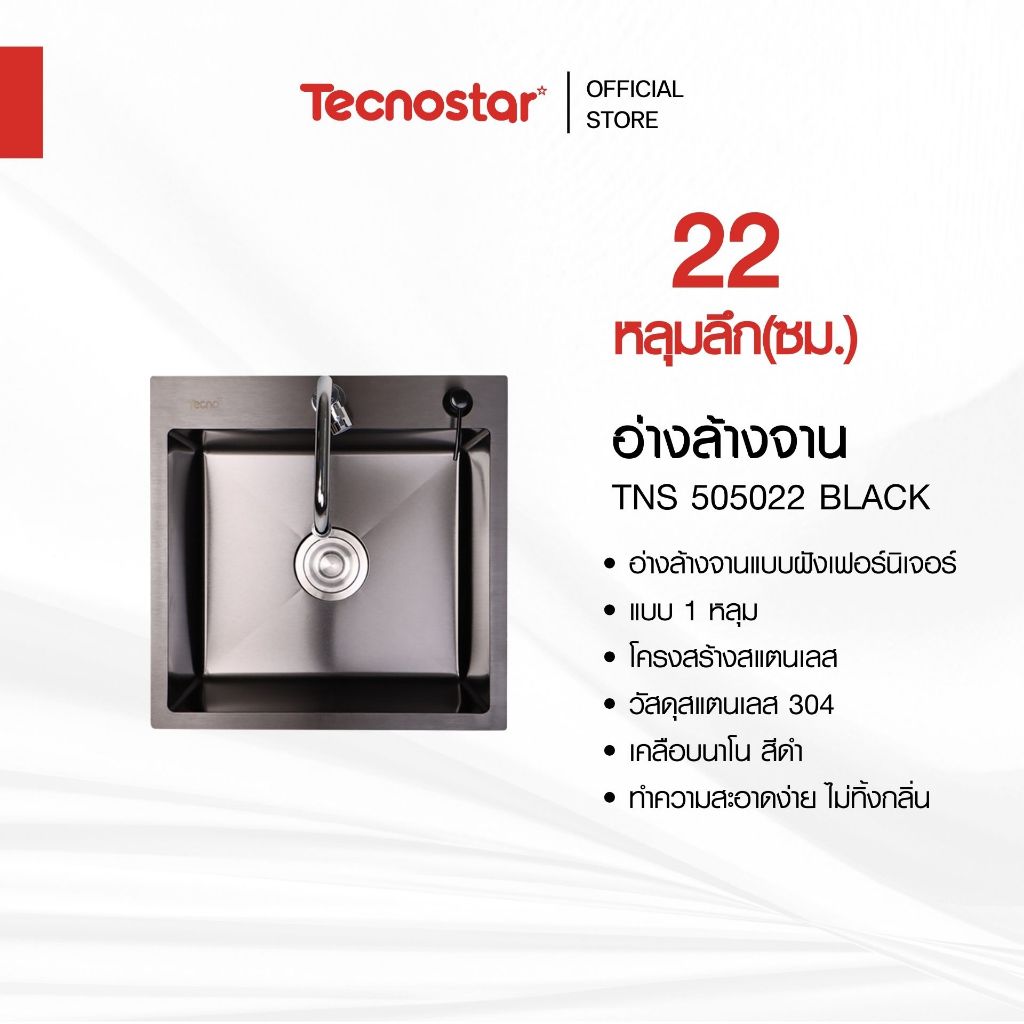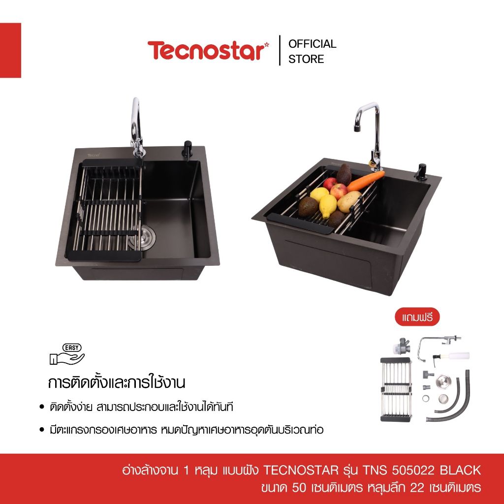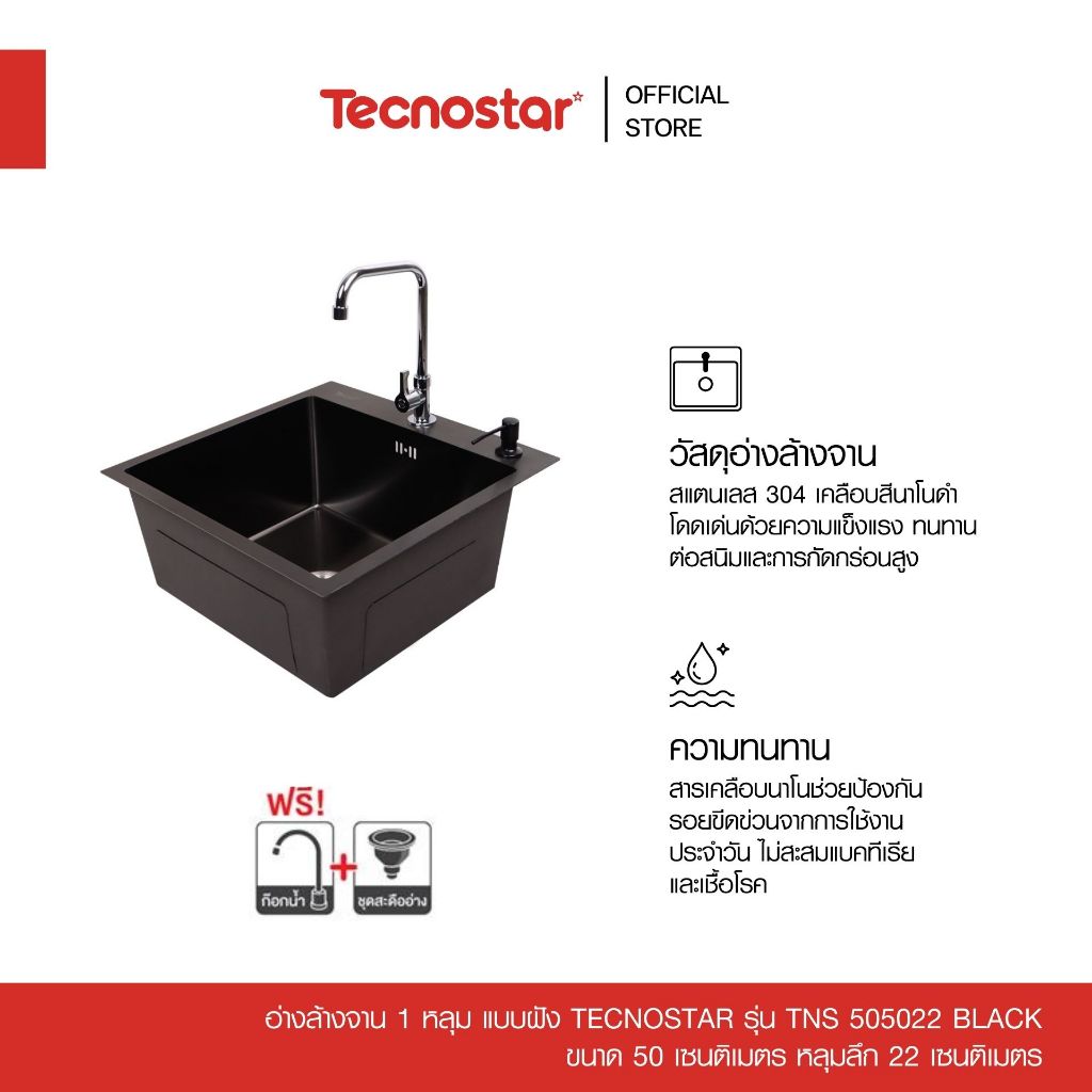 อ่างล้างจาน 1 หลุม แบบฝัง Tecnostar รุ่น TNS 505022 BLACK ขนาด 50 ซม. แถมฟรี! ก๊อกซิงค์ สีดำ(ยืน) รุ่น ZI18-BLACK