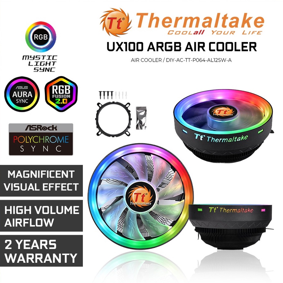 พัดลมซีพียู THERMALTAKE UX100 ARGB Lighting CPU Cooler (CL-P064-AL12SW-A)