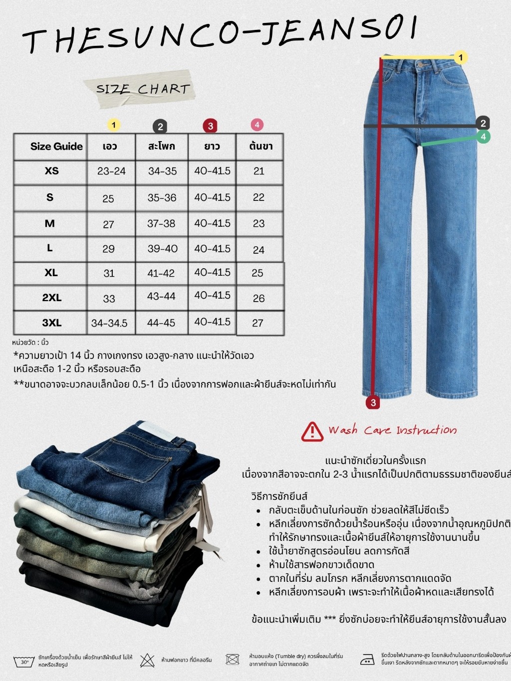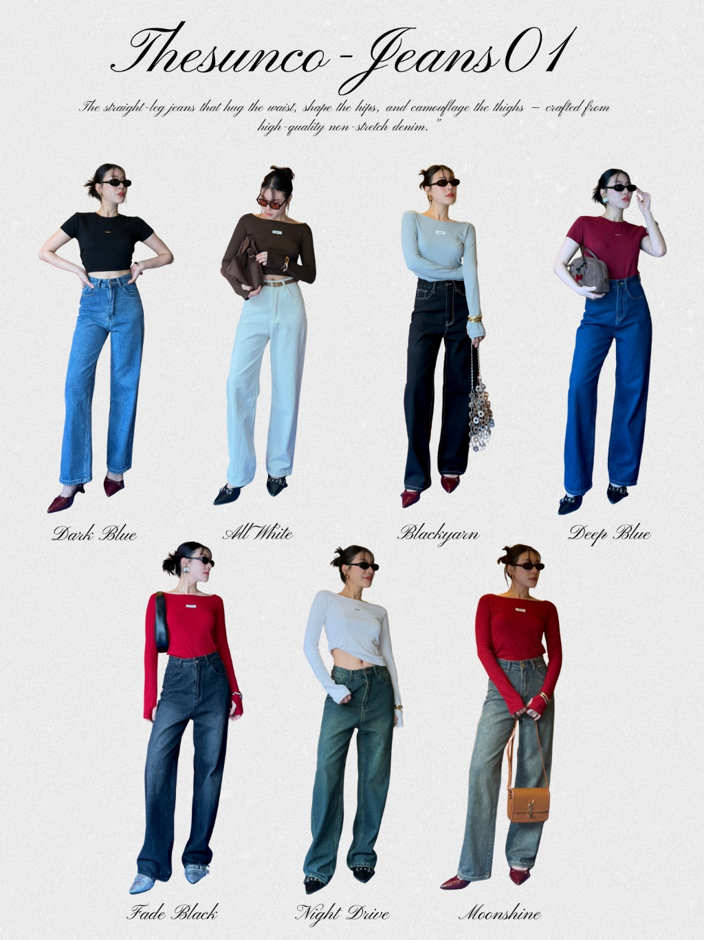 THESUNCO-JEANS01กางเกงยีนส์ขากระบอกตรงเอวสูง เก็บหุ่น พรางหน้าท้อง