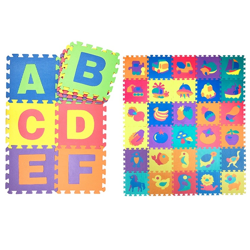 THETOY แผ่นรองคลาน เซต 56 แผ่น ขนาด 30*30 ซม ต่อแผ่น A-Z ผลไม้ พาหนะ และ รูปสัตว์