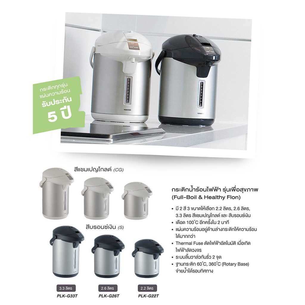 TOSHIBA กระติกน้ำร้อน รุ่น PLK-G26TS ความจุ 2.6 ลิตร