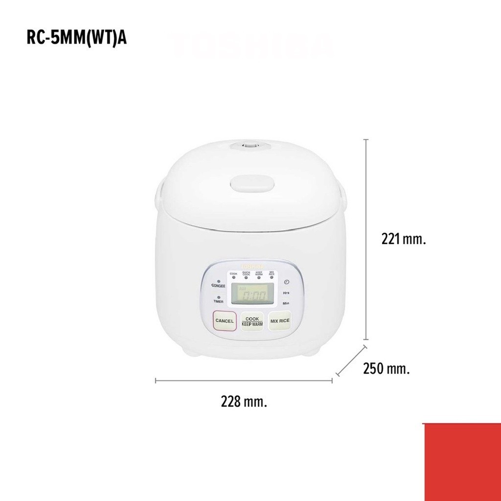 TOSHIBA หม้อหุงข้าวดิจิตอล ขนาด 0.54 ลิตร รุ่น RC-5MM(WT)A (สีขาว) กำลังไฟ 360 วัตต์