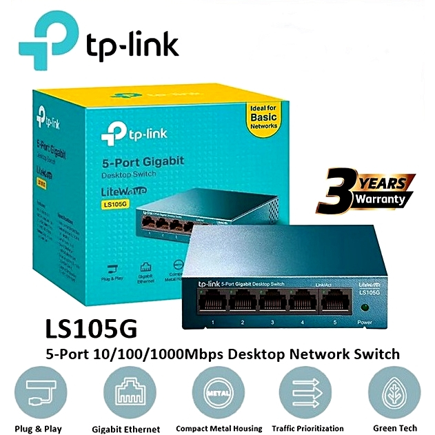 TP-LINK (LS105G) 5-Port Gigabit 10/100/1000Mbps Desktop Network Switch