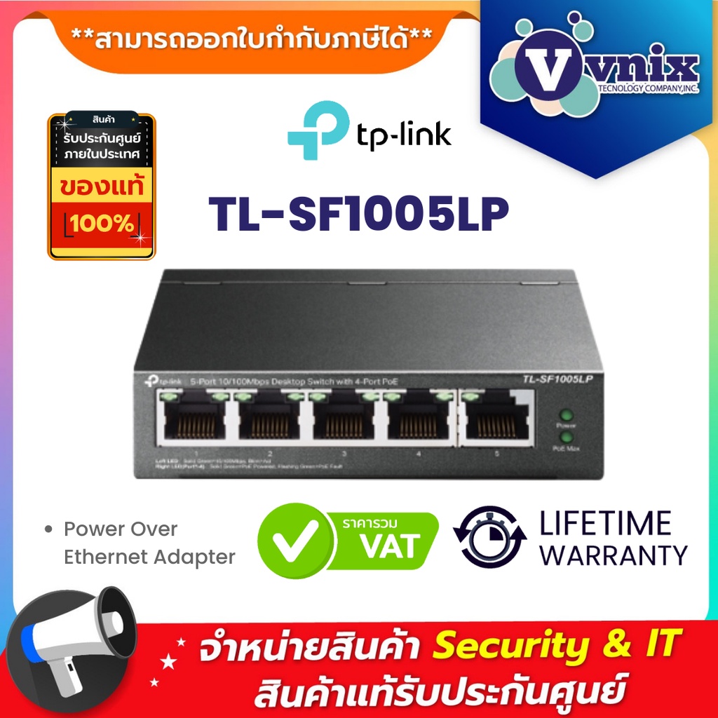 TP-LINK TL-SF1005LP 5-PORT 10/100Mbps DESKTOP SWITCH WITH 4-PORT POE รับประกันตลอดการใช้งาน By Vnix Group
