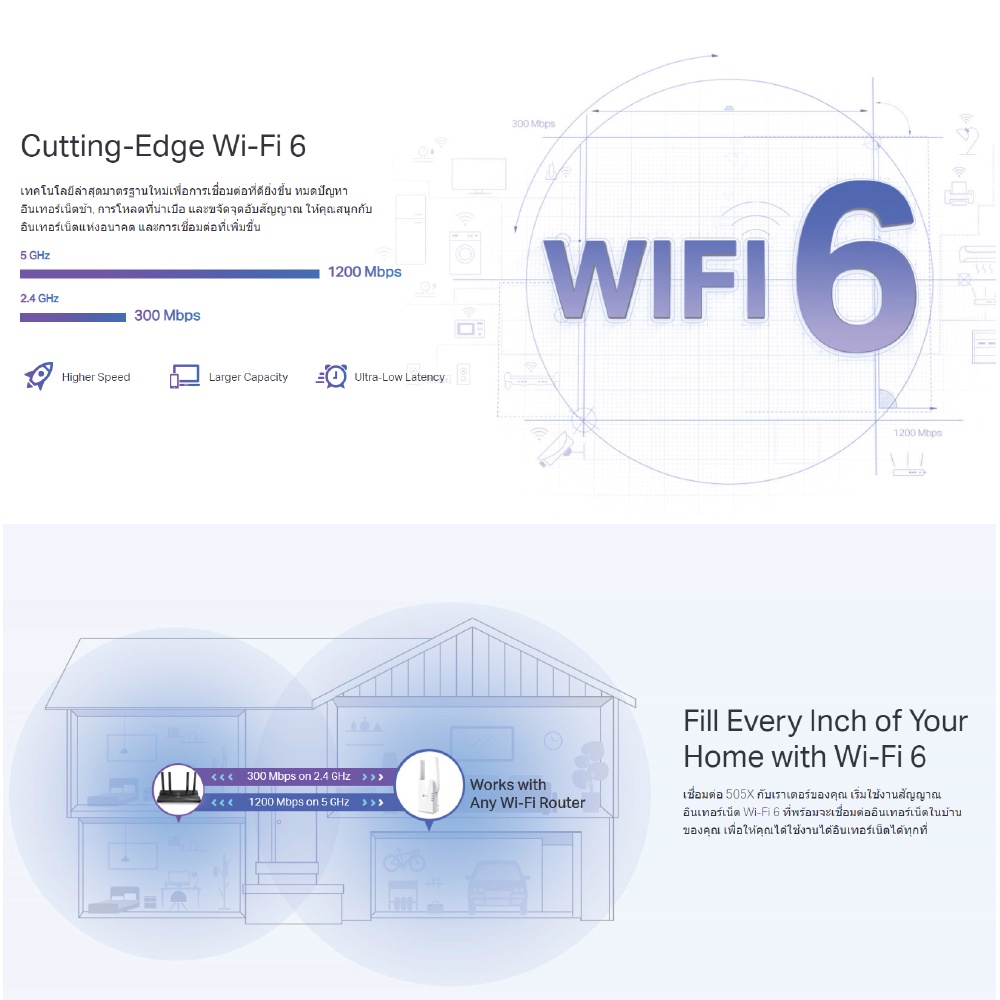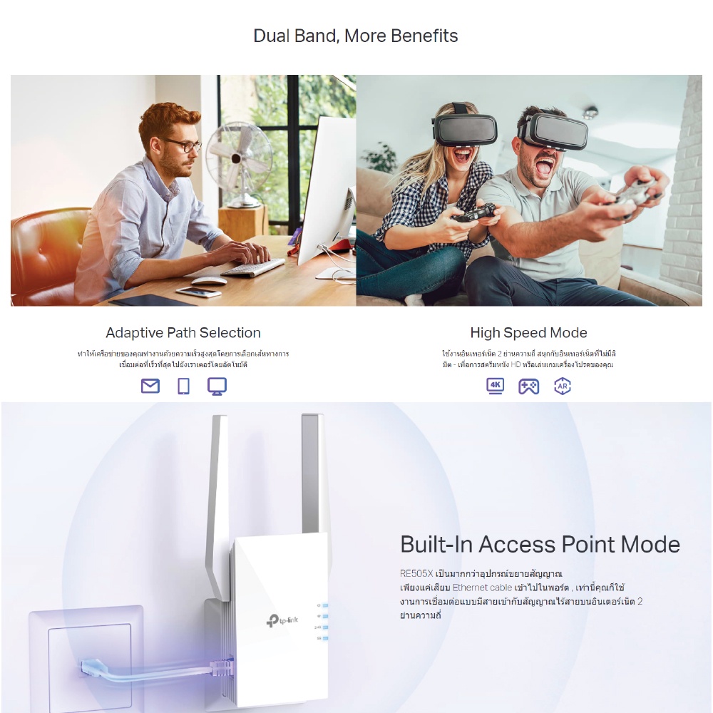 TP-Link RE505X|AX1500 Wi-Fi Range Extender Wifi Amplifier Repeater | อุปกรณ์ขยายสัญญาณ แรงเต็มสปีด กับเทคโนโลยี WiFi6