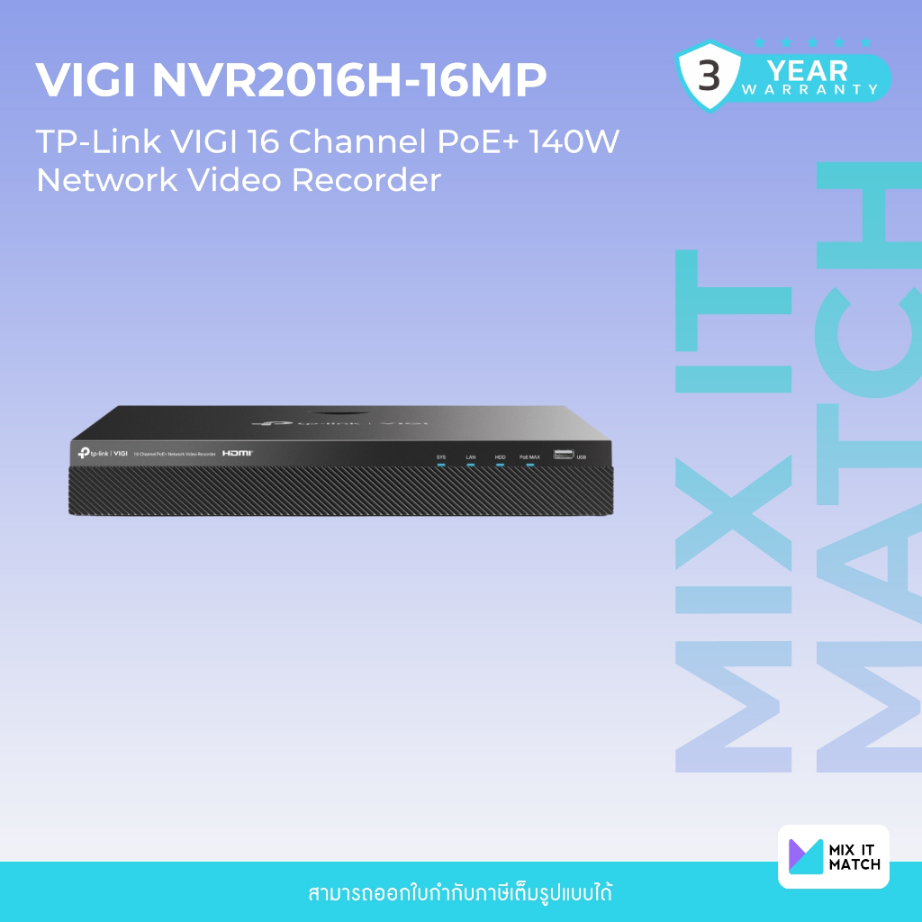 TP-Link VIGI NVR2016H-16MP (VIGI NVR2016H-16MP) 16 Channel PoE+ 140 Watt Network Video Recorder