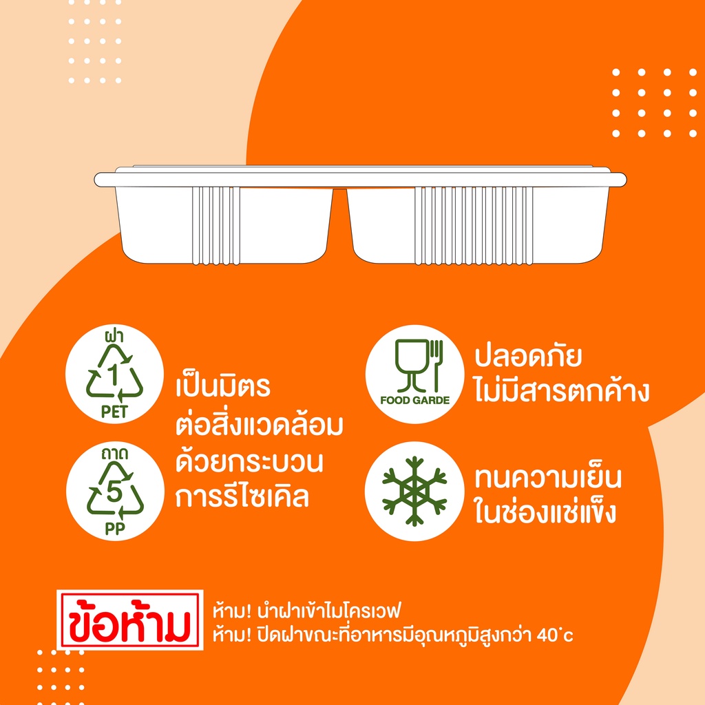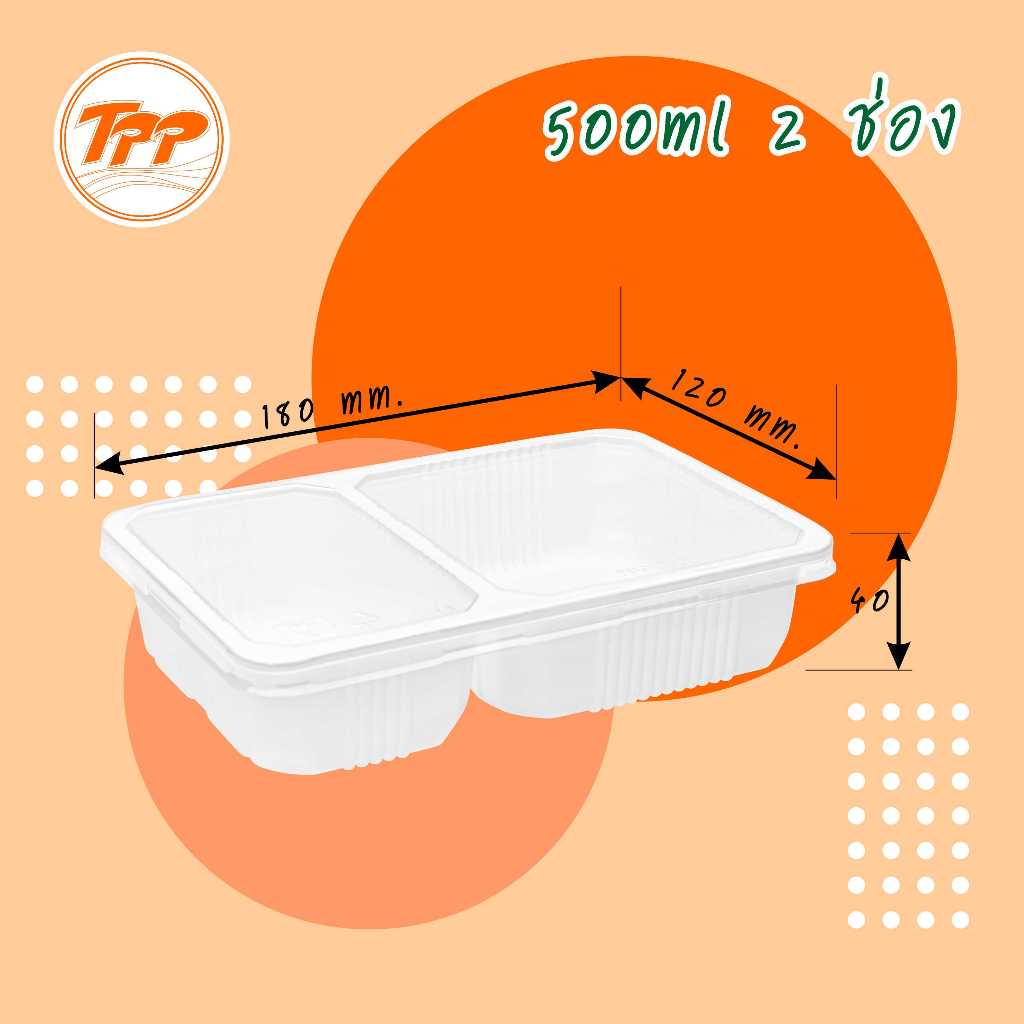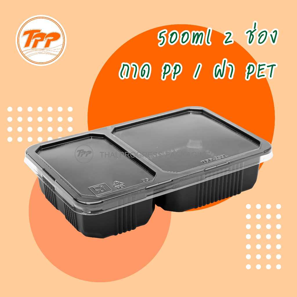 TPP (ยกลัง) ชุดกล่องข้าว 500ml 2 ช่อง 250 ชุด PP/PET ฝาแยก