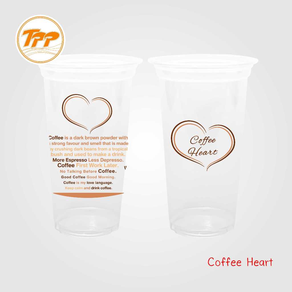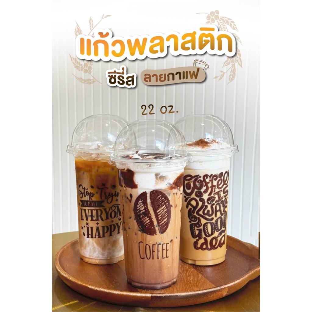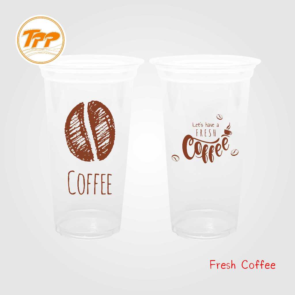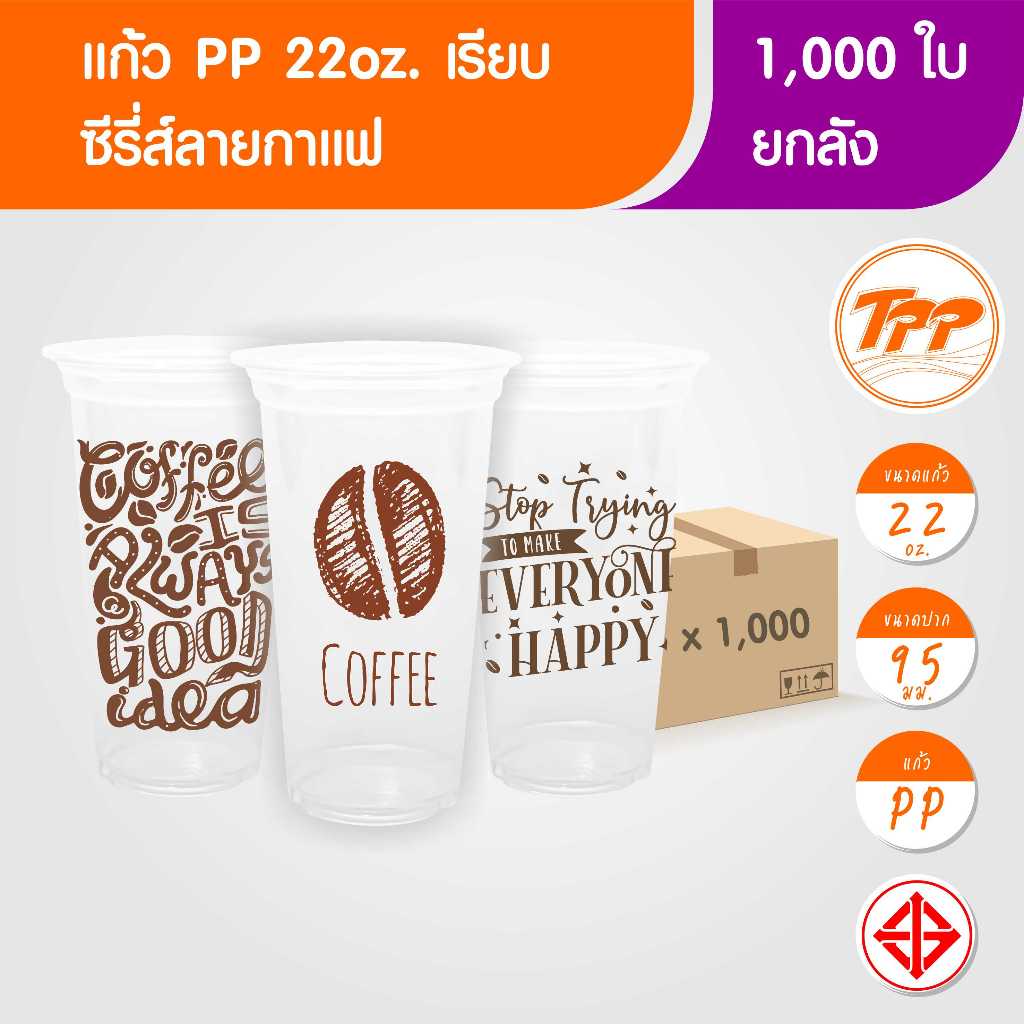 TPP (ยกลัง) แก้วพลาสติก 22oz เรียบ ลายกาแฟ 1,000 ใบ PP ปาก 95