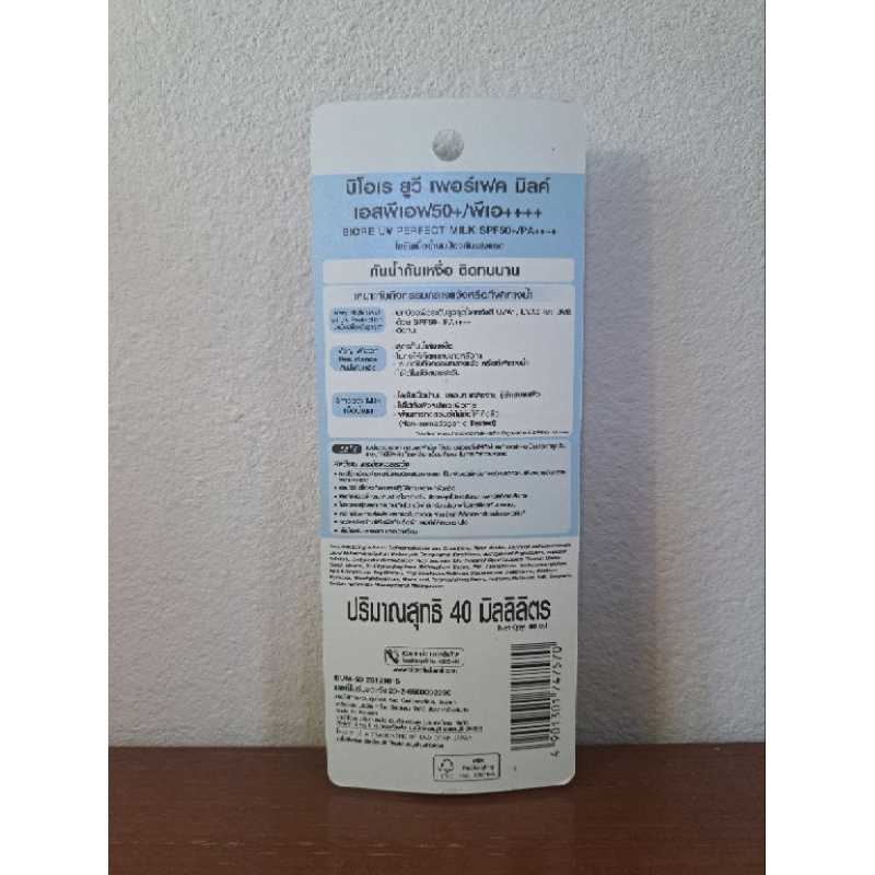 บิโอเร ยูวี เพอร์เฟ็ค มิลค์ เอสพีเอฟ 50+พีเอ++++ 40 มล. Biore UV Perfect Milk SPF50+PA++++ 40 ml. กันแดด น้ำนม