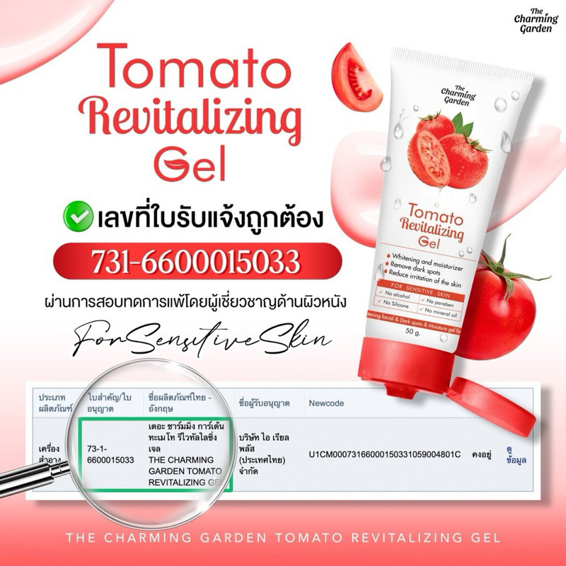เจลกู้ผิวมะเขือเทศ Tomato Revitalizing Gel ( ปริมาณ 50 กรัม )