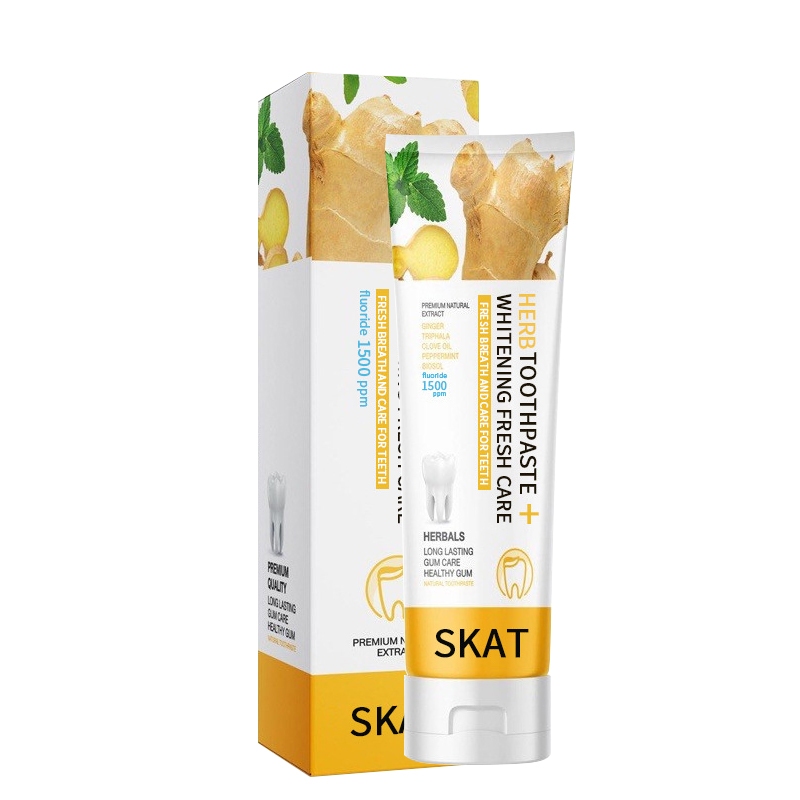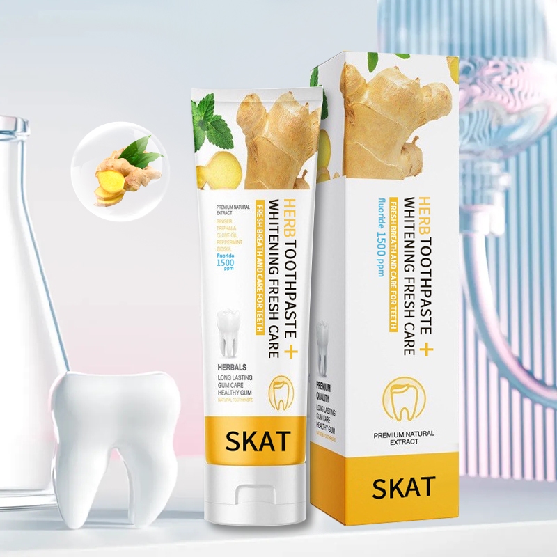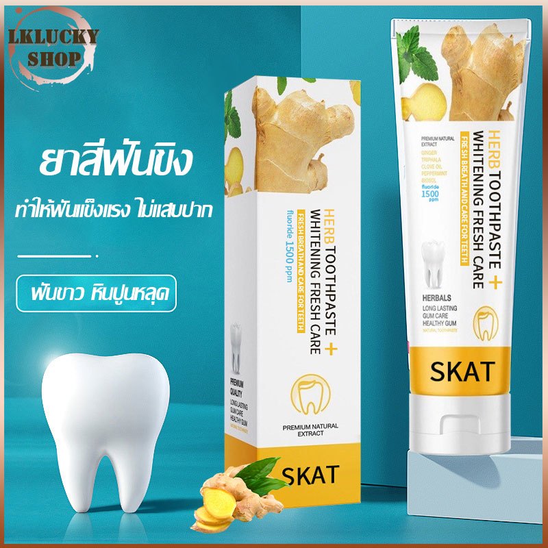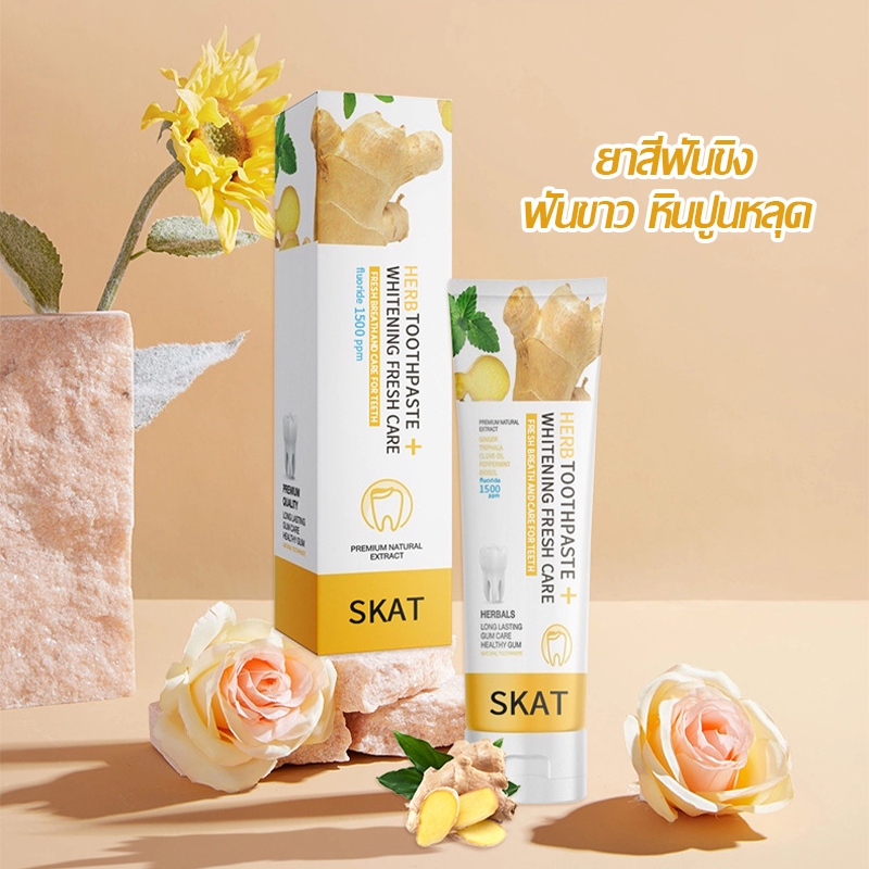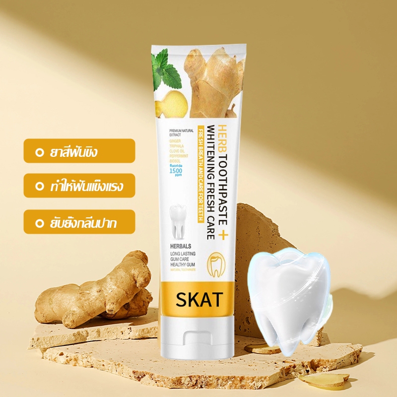 ยาสีฟันขิง SKAT ยาสีฟันสมุนไพร ลดกลิ่นปาก ฟันขาว ฟันแข็งแรง ลดคราบหินปูน 50g ป้องกันฟันผุ(1525)