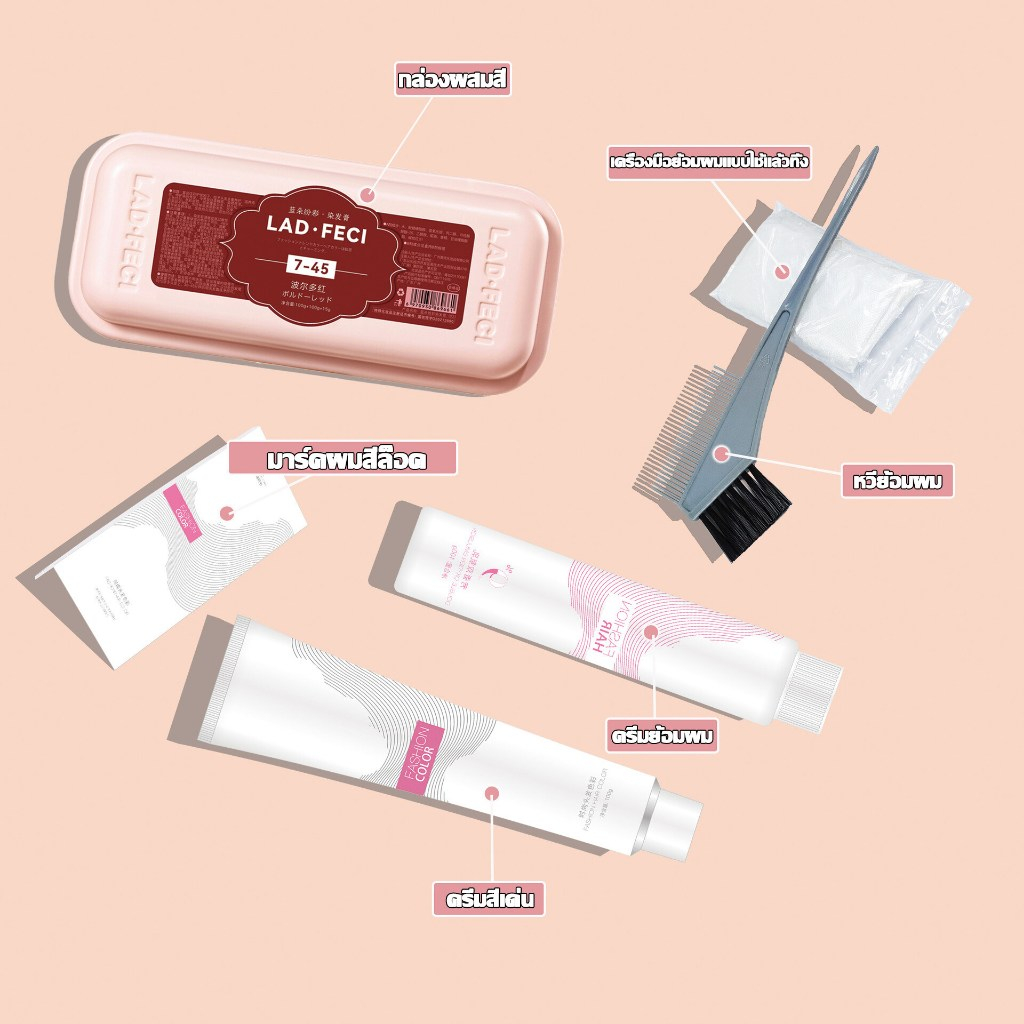 สูตรใหม่ล่าสุด✨รุ่นใหม่ล่าสุด LAD-FECI สีย้อมผม ยาย้อมผม 100ml*2 ไม่ต้องฟอกสีผม สีติดเร็ว ไม่ซีดง่าย สีผมจะไม่ทำร้ายผม