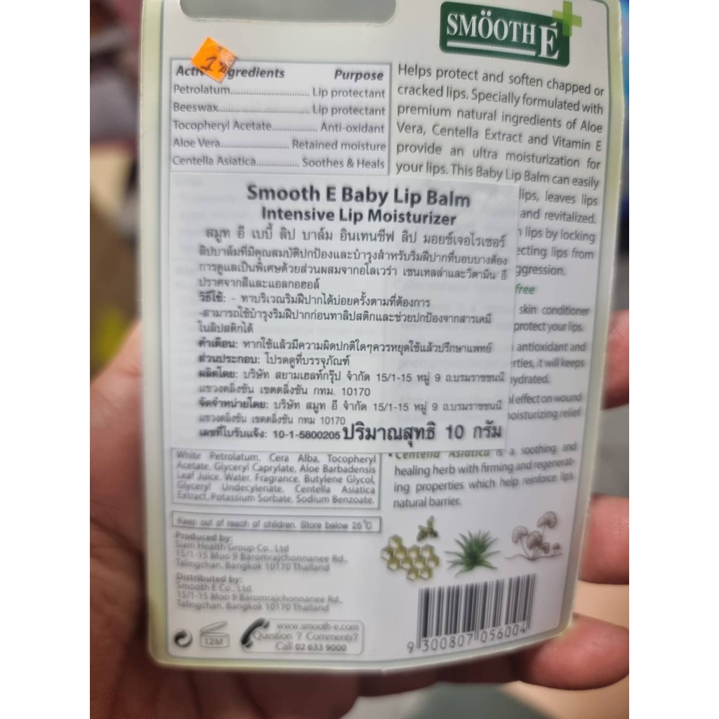 Smooth E Baby Lip Balm (Intensive Lip Moisturizer) 10g. ลิปบาล์ม เพิ่มความชุ่มชื้น จากธรรมชาติ