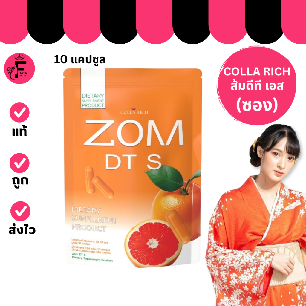 (1 ซอง) Collarich ส้มดีที zom dt อาหารเสริม ดีท็อกซ์ (ปริมาณ 10 แคปซูล)
