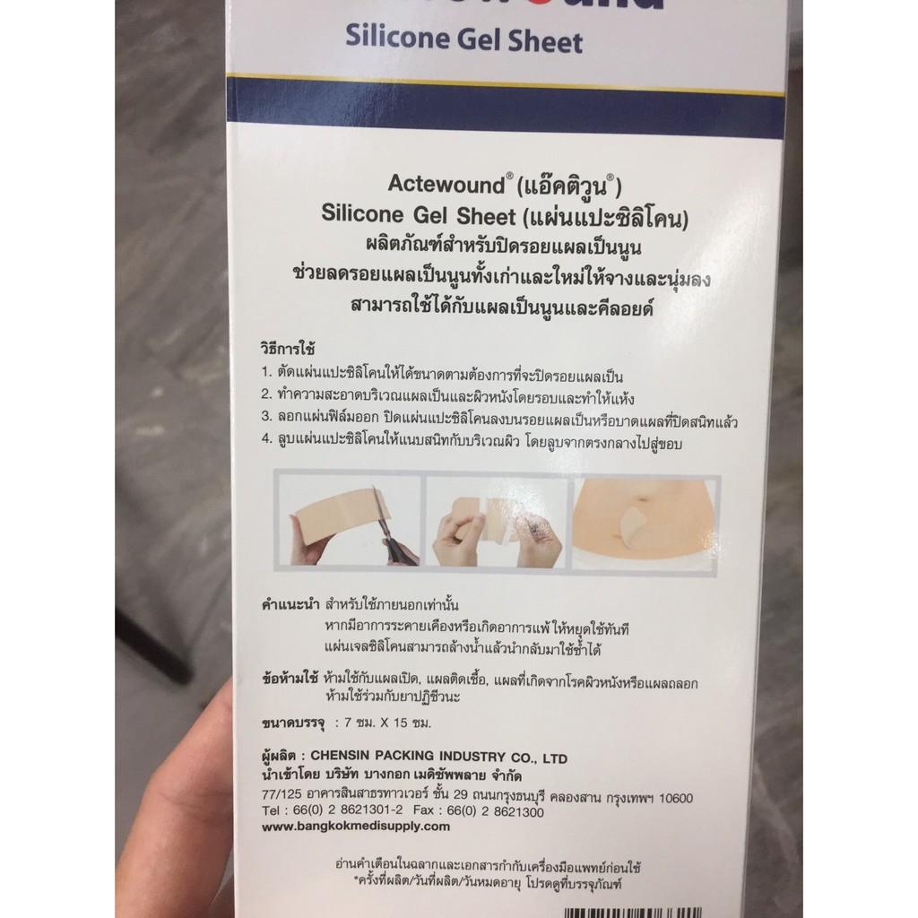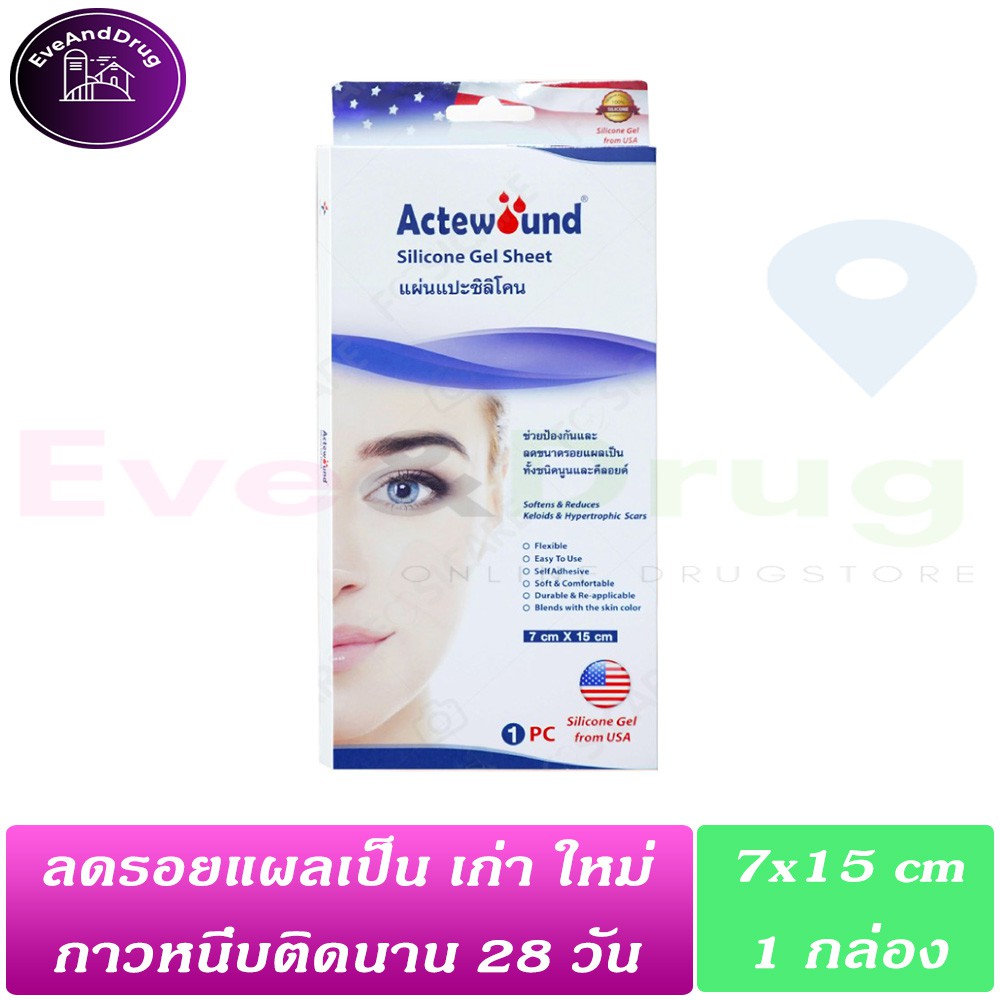 Actewound Silicone Gel Sheet ขนาด 7cm x 15cm (1กล่อง) แผ่นแปะซิลิโคน แผ่นลดรอยแผลเป็นนูนทั้งเก่าและใหม่ แผลเป็น คีลอย
