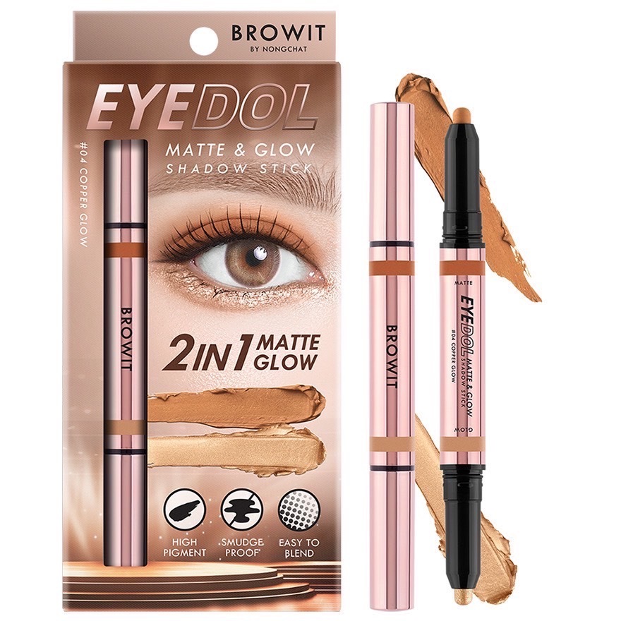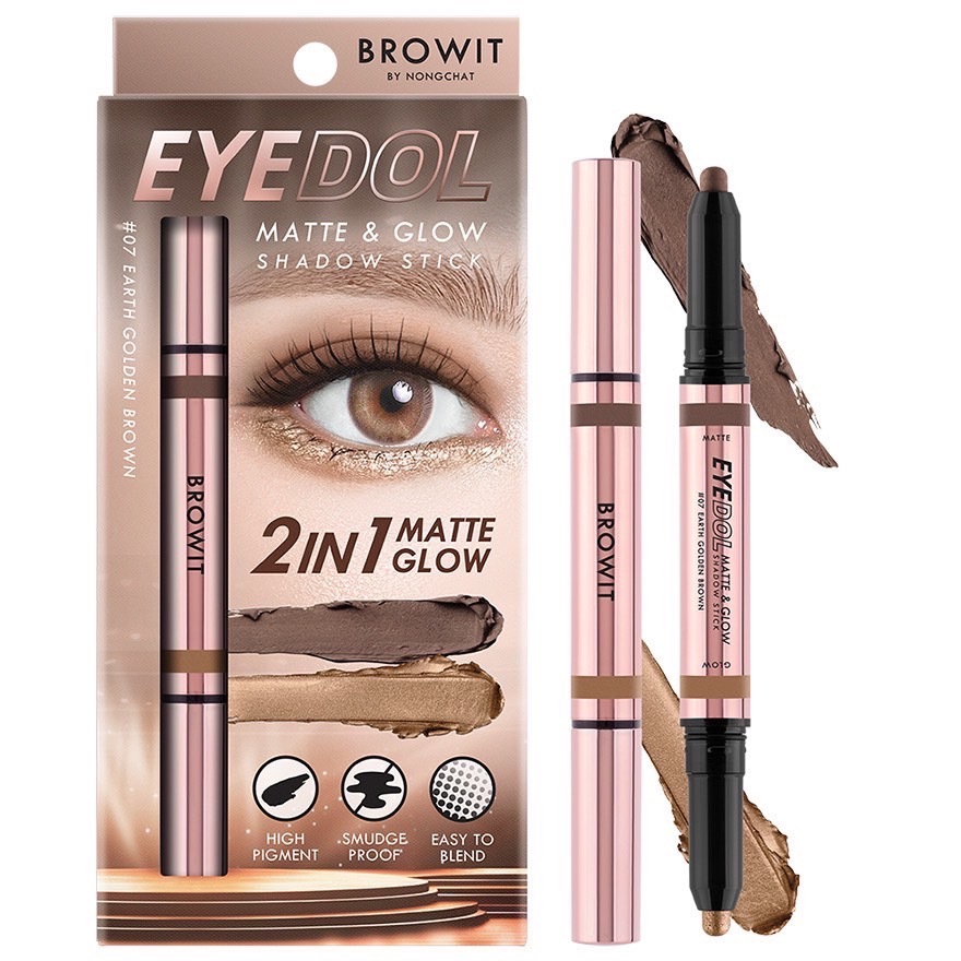 บราวอิท ไอดอล อายแชโดว์สติ๊ก 2in1 เนื้อแมท + เนื้อชิมเมอร์ 0.5g+0.5g Browit EYEDOL Matte Glow Shadow Stick