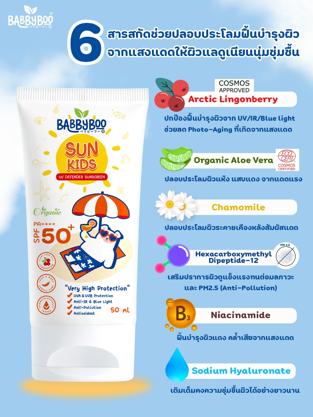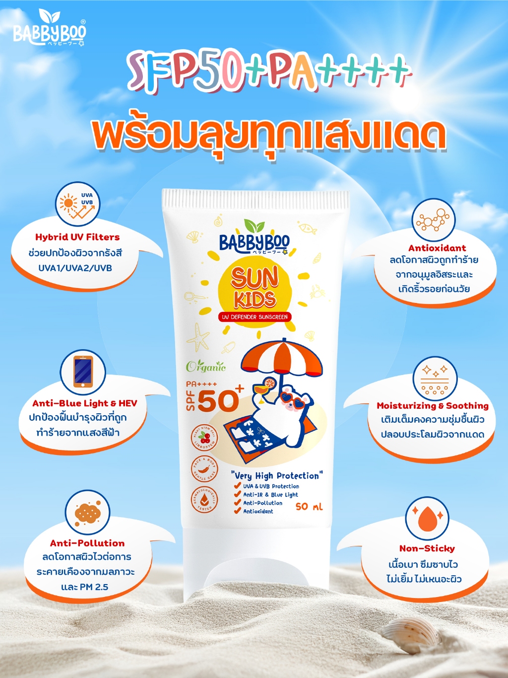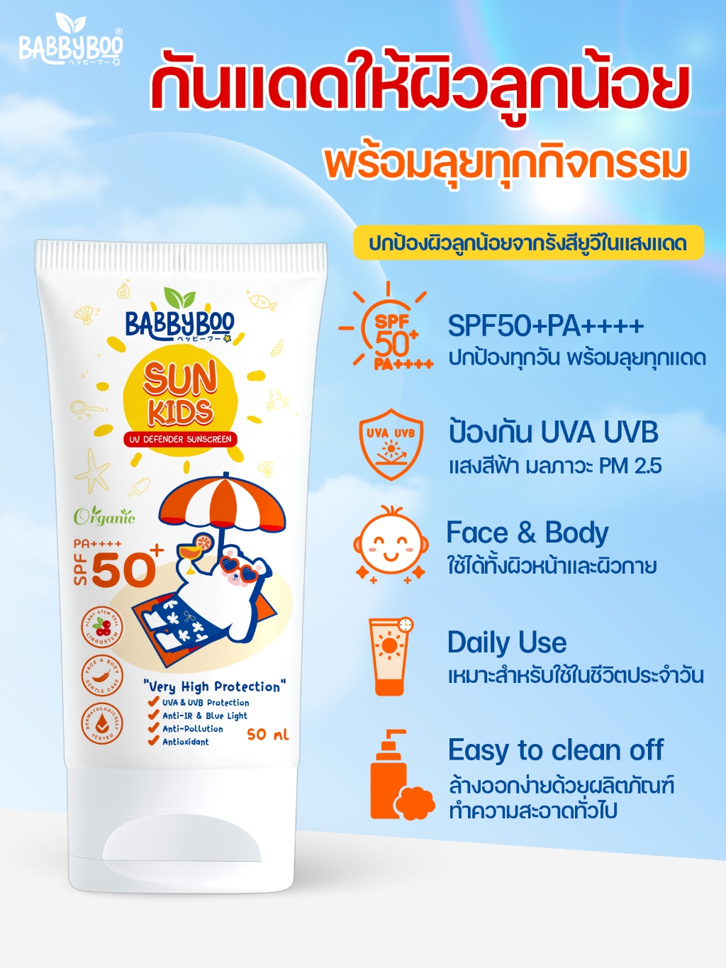 [Set 4 ชิ้น] BABBYBOO ครีมกันแดดสำหรับเด็ก ปกป้องผิวจาก UVA UVB แสงสีฟ้า SPF50+PA++++ ผิวหน้าผิวกาย