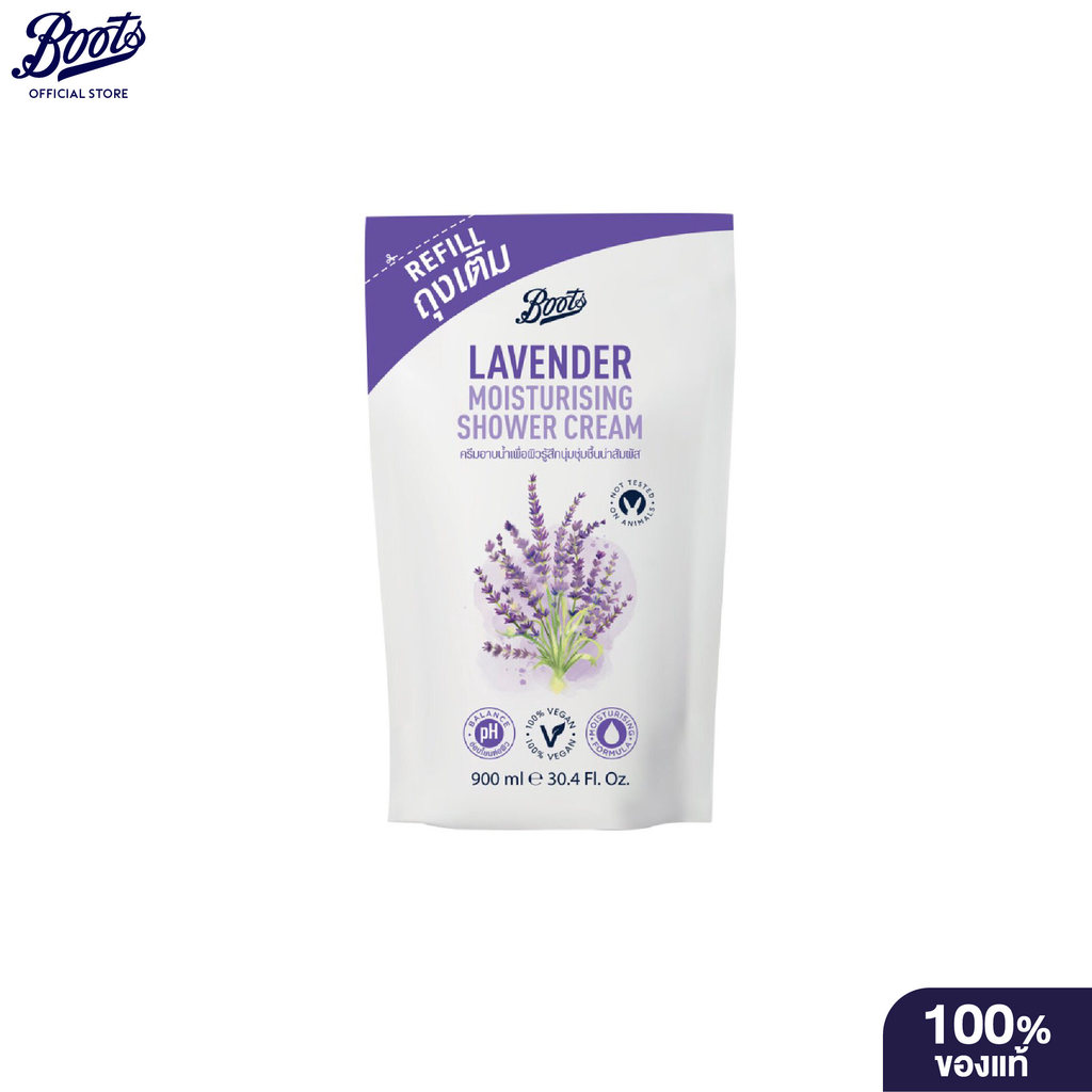 Boots Lavender Moisturising Shower Cream Refill Pouch 900 ML บู๊ทส์ ลาเวนเดอร์ มอยส์เจอร์ไรซิ่ง ชาวเวอร์ ครีม รีฟิว