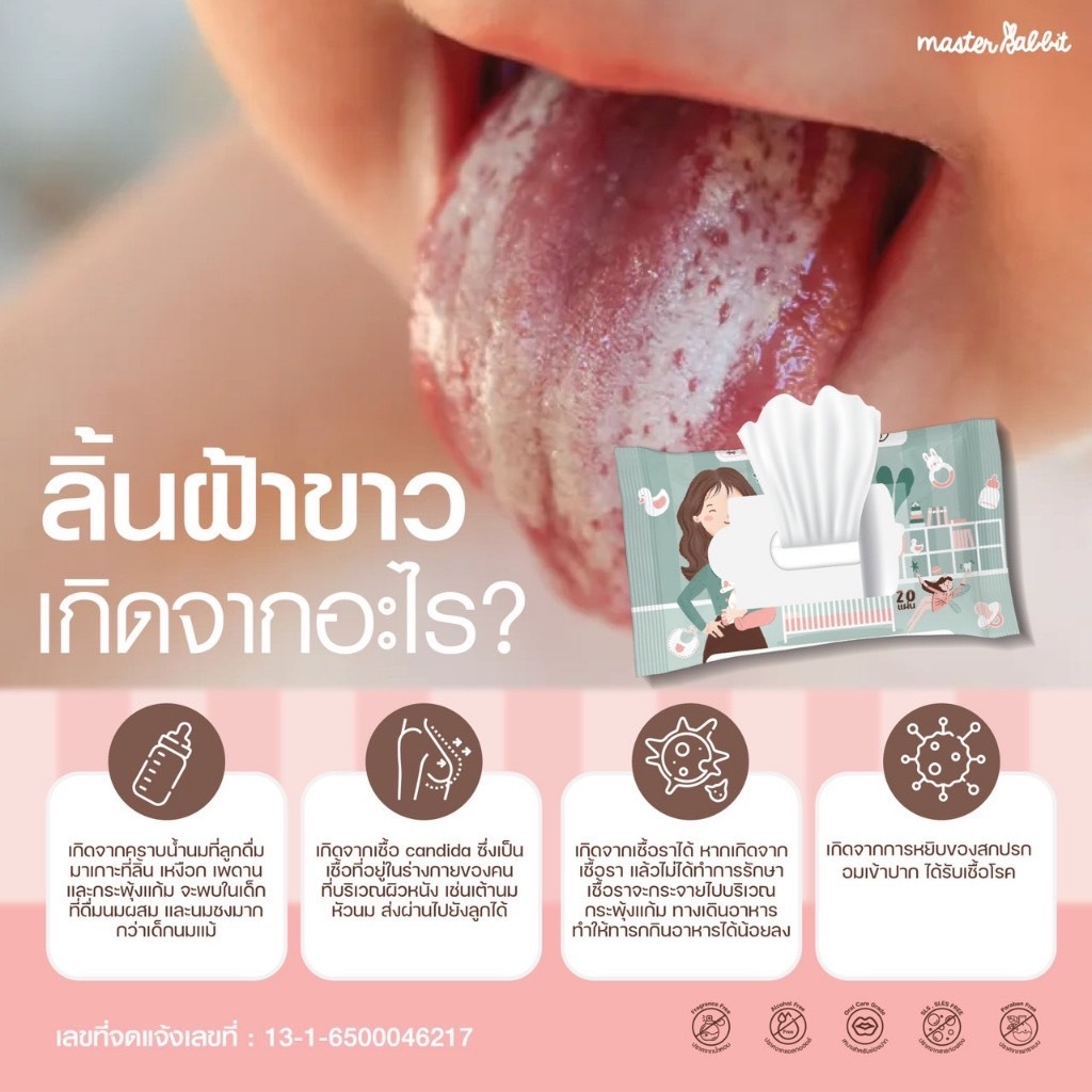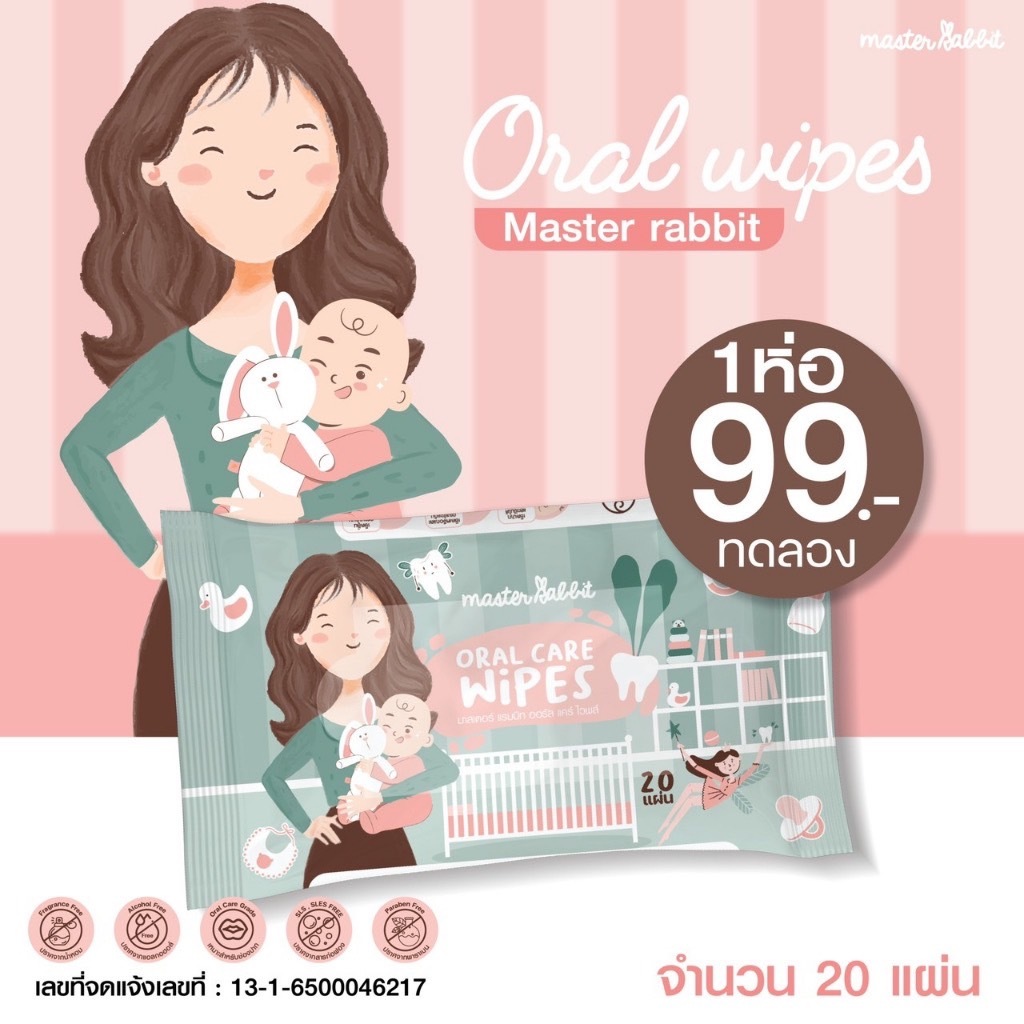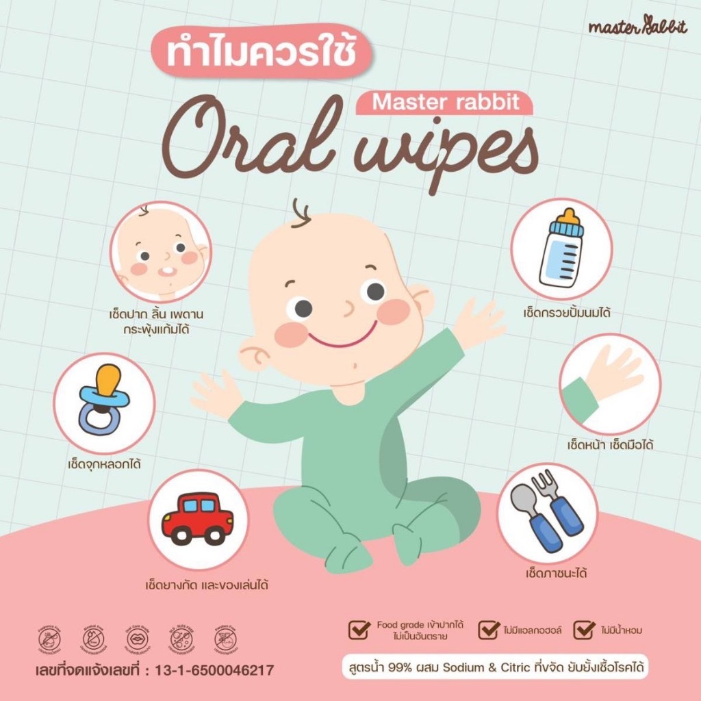 ทิชชู่ Oral Wipes Master Rabbit เช็ดทำความสะอาดช่องปากสำหรับเด็ก เช็ดลิ้น เหงือก ฟัน กระพุ้งแก้ม 1ห่อ