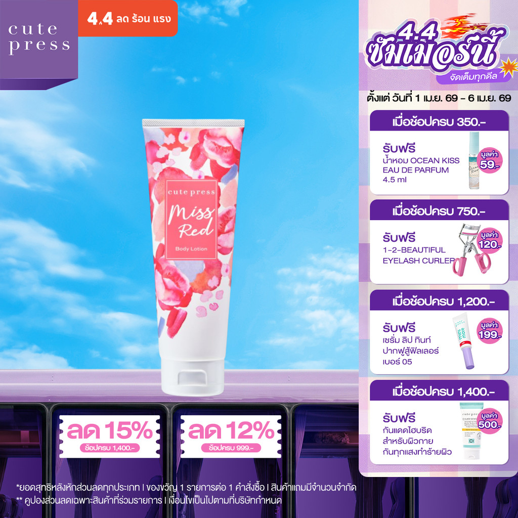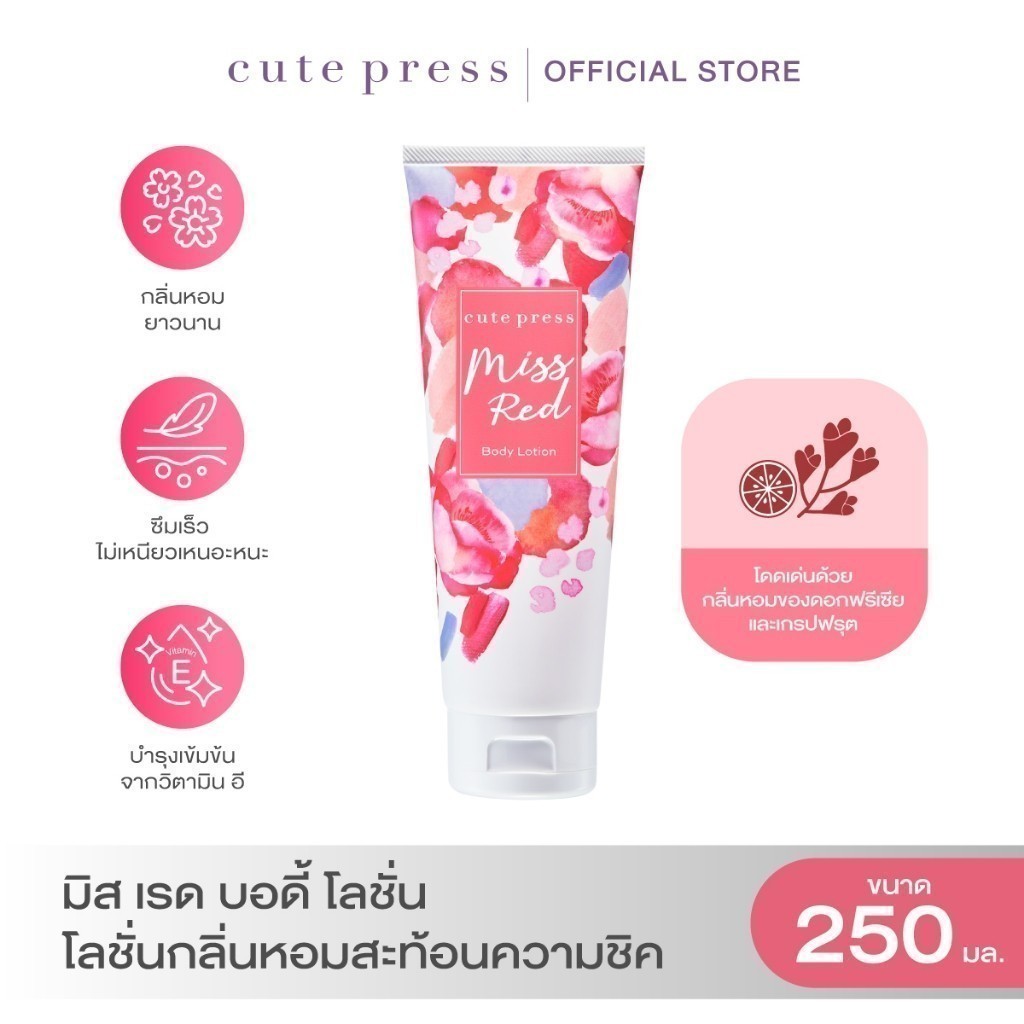 CUTE PRESS โลชั่นบำรุงผิว MISS RED BODY LOTION 250 ml โลชั่นกลิ่นหอมสะท้อนความชิค