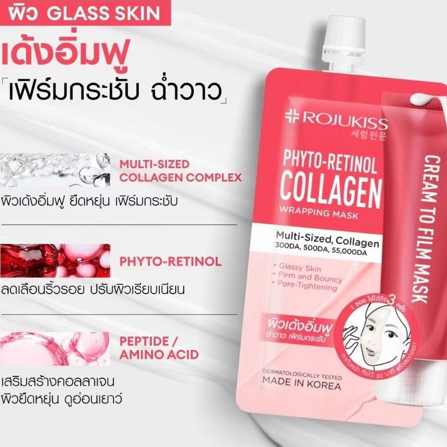 [ซอง] Rojukiss Phyto-Retinol Collagen Wrapping Mask โรจูคิส ไฟโต-เรตินอล คอลลาเจน แร็ปปิ้ง มาส์ก 10ml