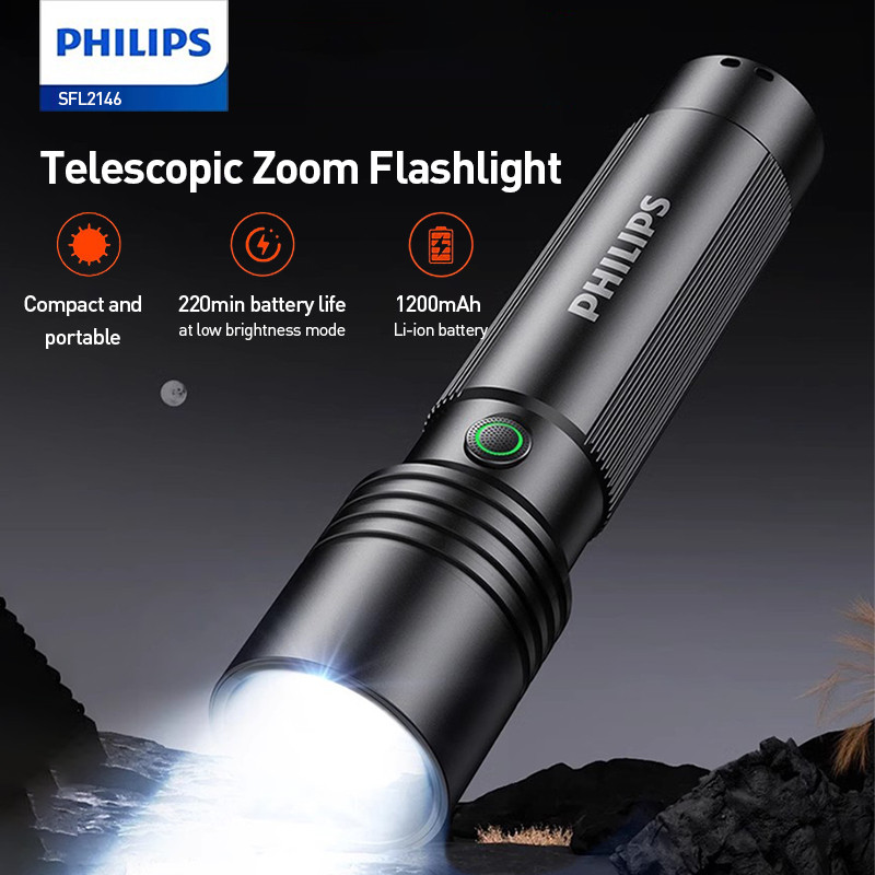 ฟิลิปส์ เอสเอฟแอล2146ซูมกล้องส่องทางไกลไฟฉายตั้งแคมป์กลางแจ้งที่มีแสงที่แข็งแกร่งไฟฉายไฟฟ้า