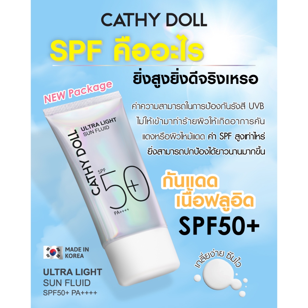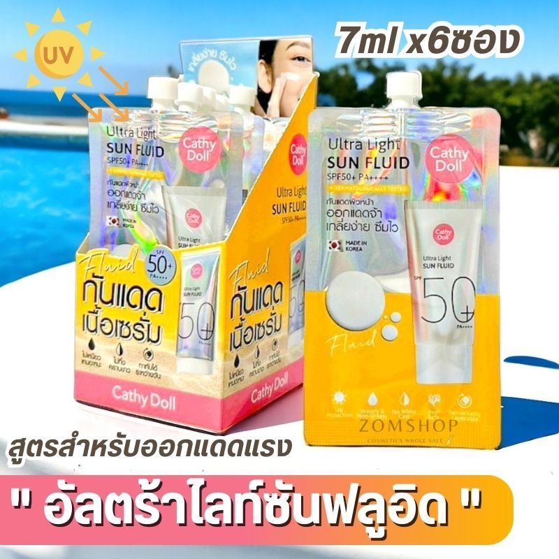 【กล่อง/6ซอง】Cathy Doll ครีมกันแดด สายป่าน【อัลตร้าไลท์ซันฟลูอิด】Ultra Light Sun Fluid SPF50+ PA++++