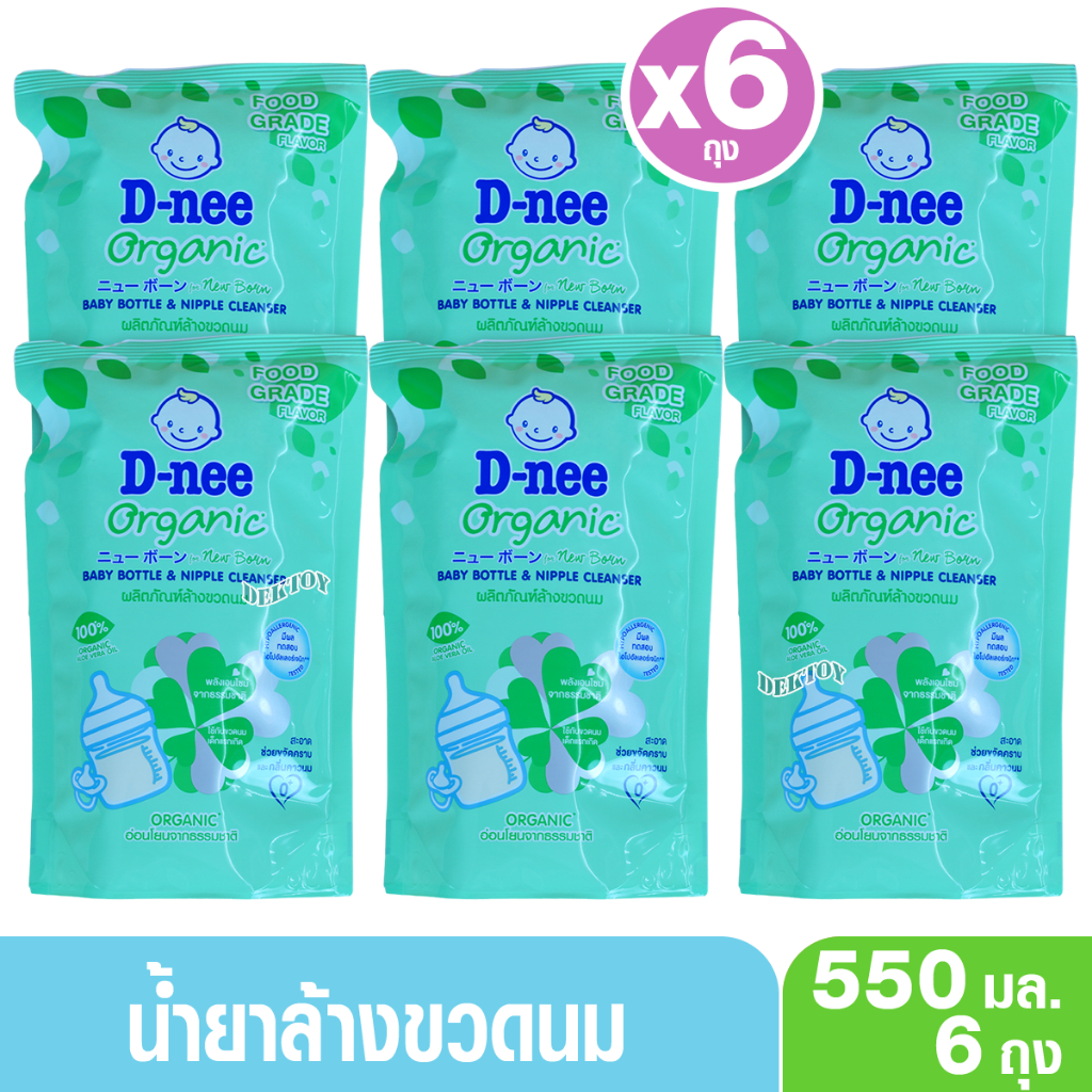 6 ถุง D-nee น้ำยาล้างขวดนมดีนี่นิวบอร์นOrganic 550 มล.