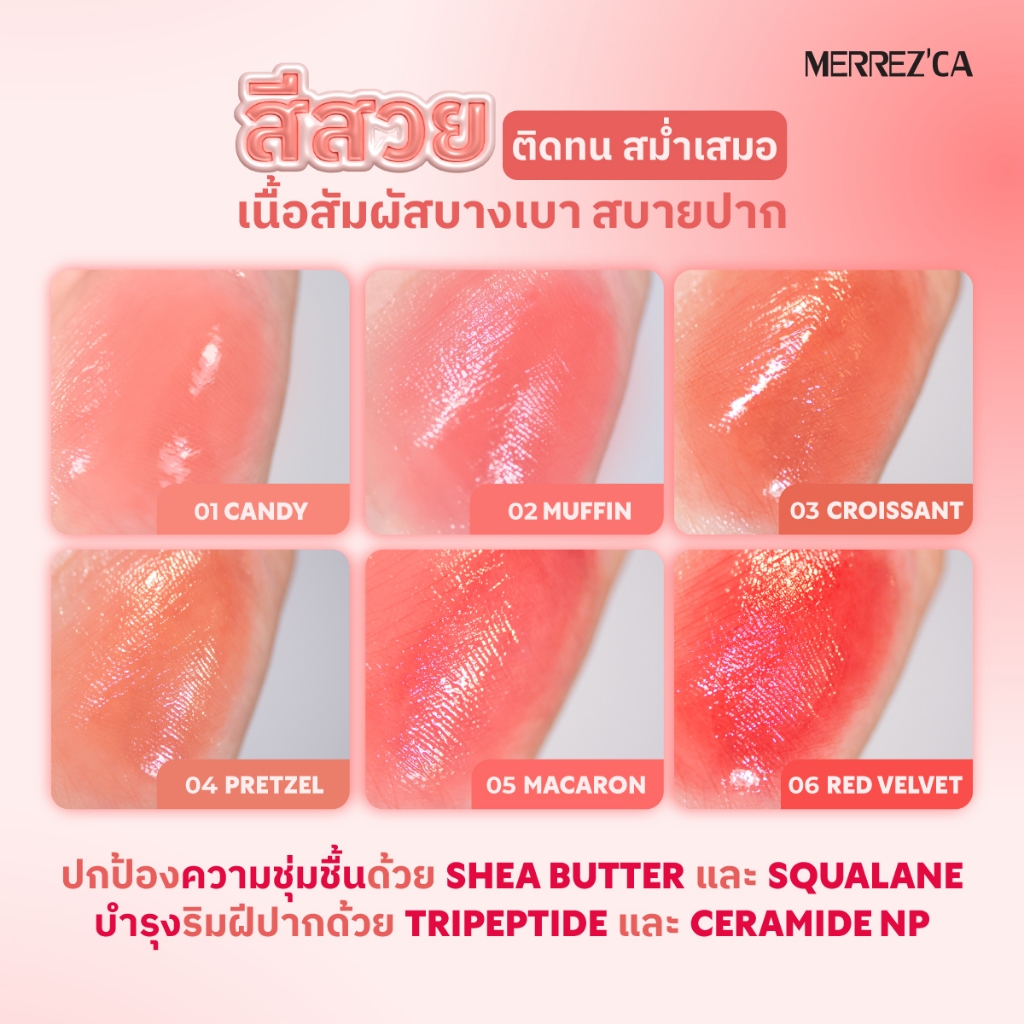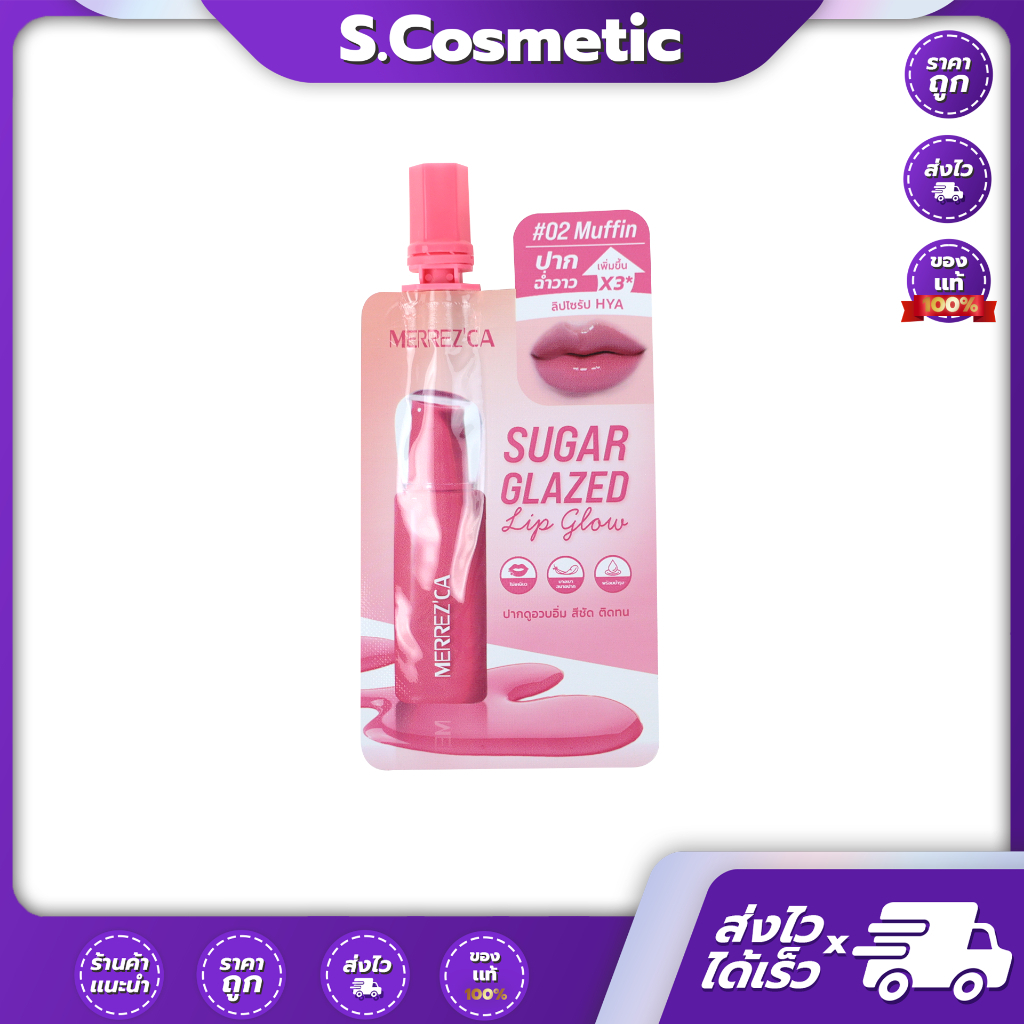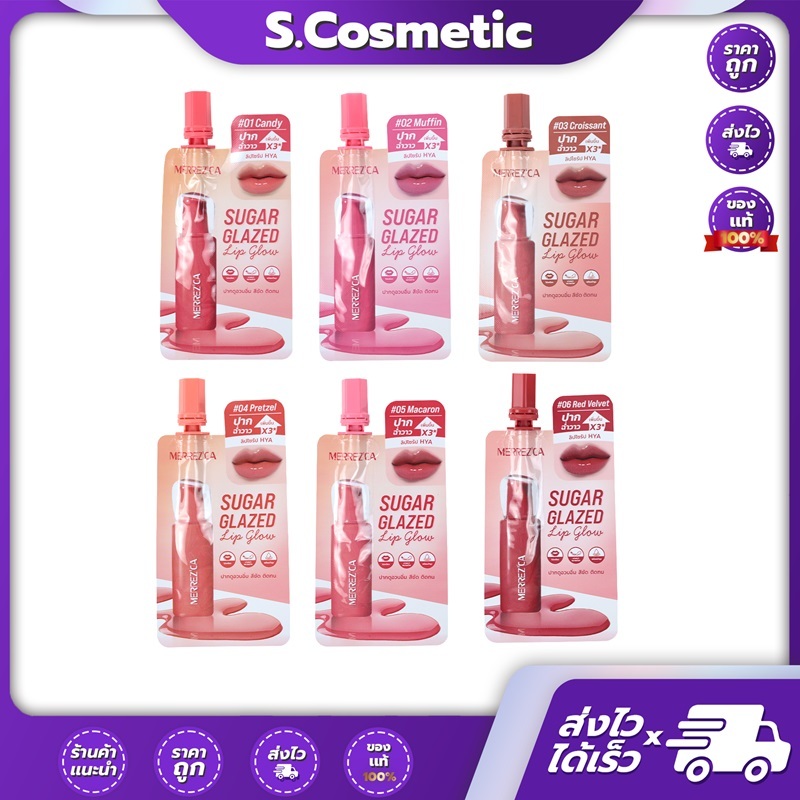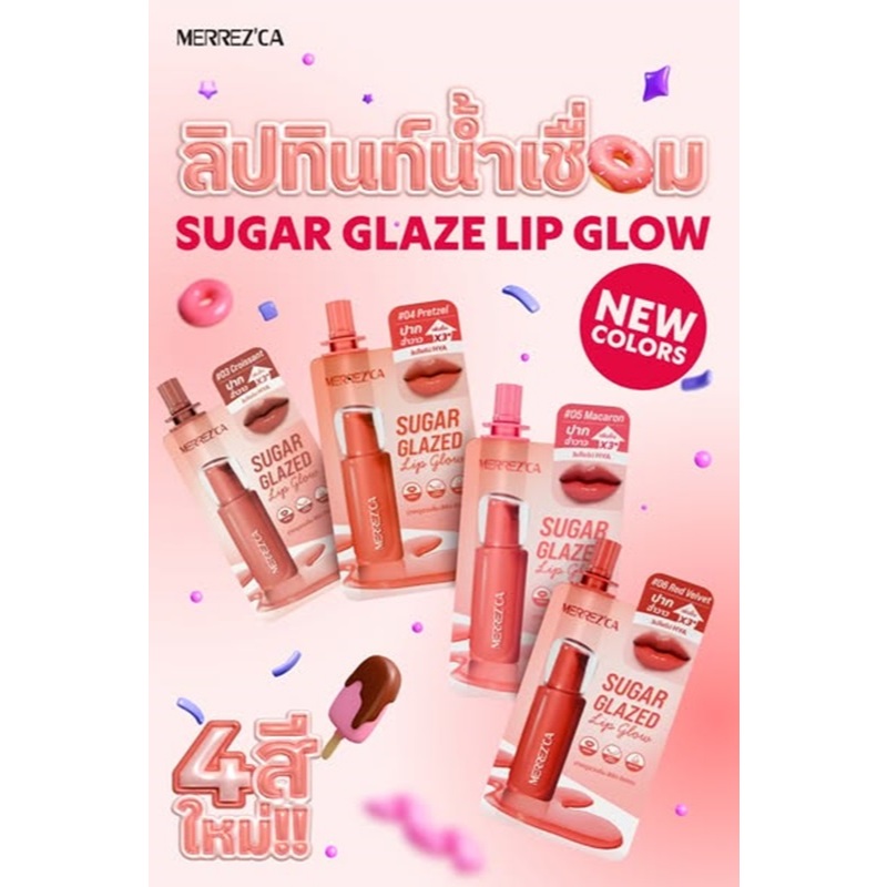 [ยกกล่อง] Merrezca sugar glazed lip glow เมอเรซกา ชูการ์ เกลซด์ ลิป โกลว์ 2 กรัม (มีให้เลือก 6 เฉดสี)