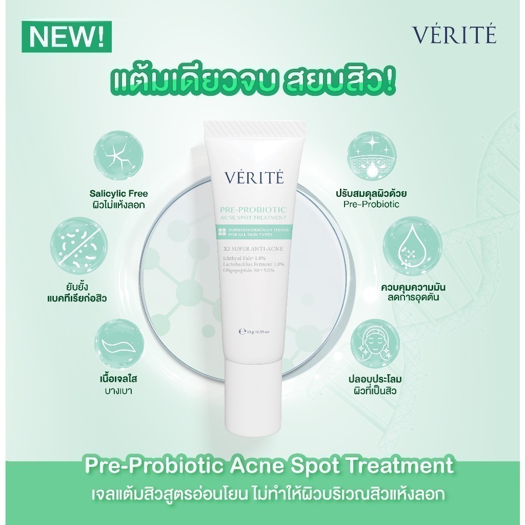 Verite Pre-probiotic Acne Spot Treatment 10g. เจลแต้มสิว ปิดจบต้นตอสิว ลดสิวอุดตัน สิวอักเสบ