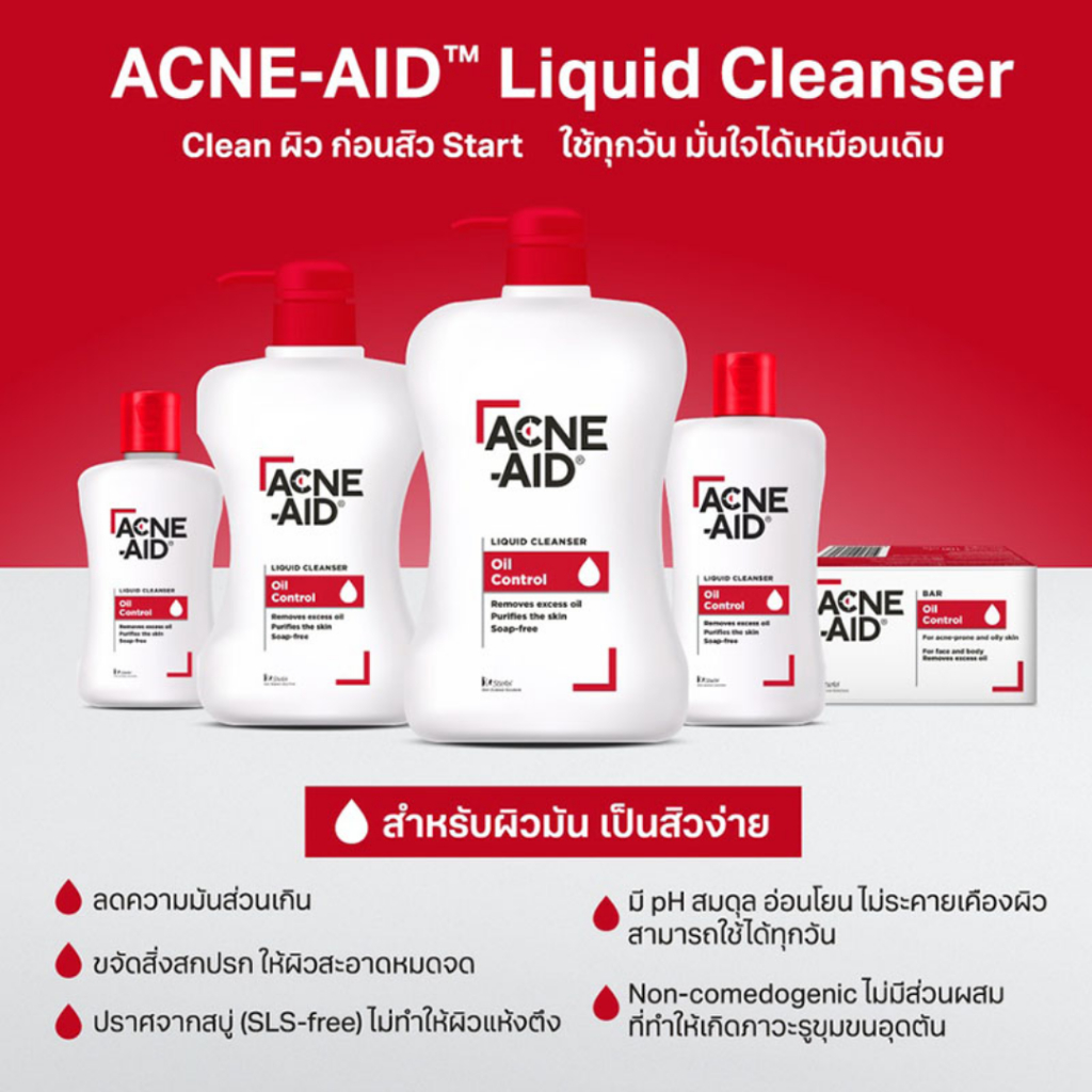 Acne-Aid Liquid Cleanser Oil Control 500 ml ผลิตภัณฑ์ทำความสะอาดผิวหน้า สำหรับผิวมัน เป็นสิวง่าย