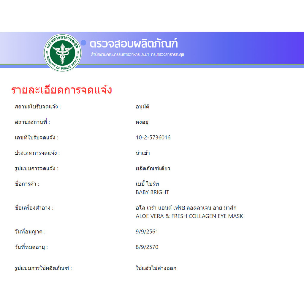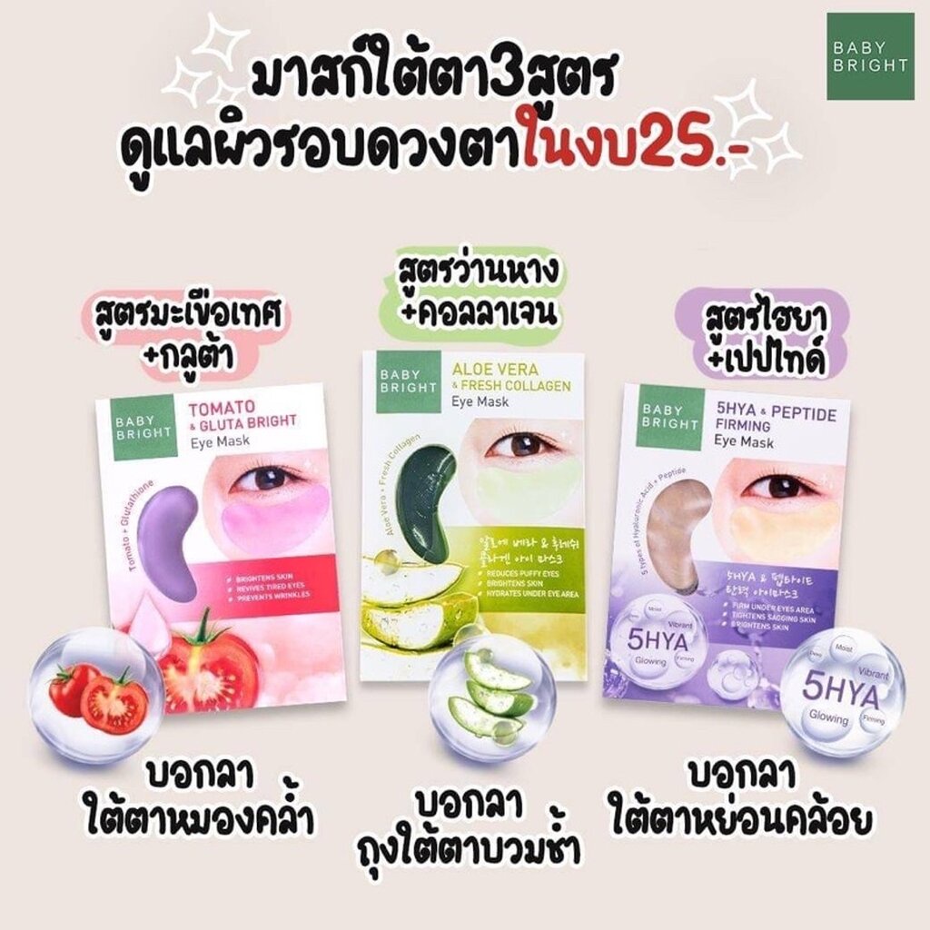 (1คู่) Baby Bright Eye Mask 3 สูตร Aloe Vera / Tomato / 5Hya เบบี้ไบร์ท มาสก์ใต้ตา ว่านหาง / มะเขือเทศ / 5 ไฮยา