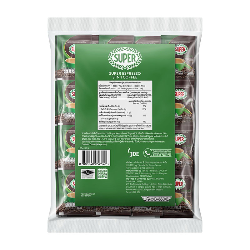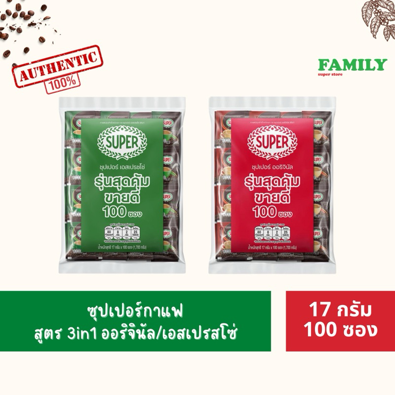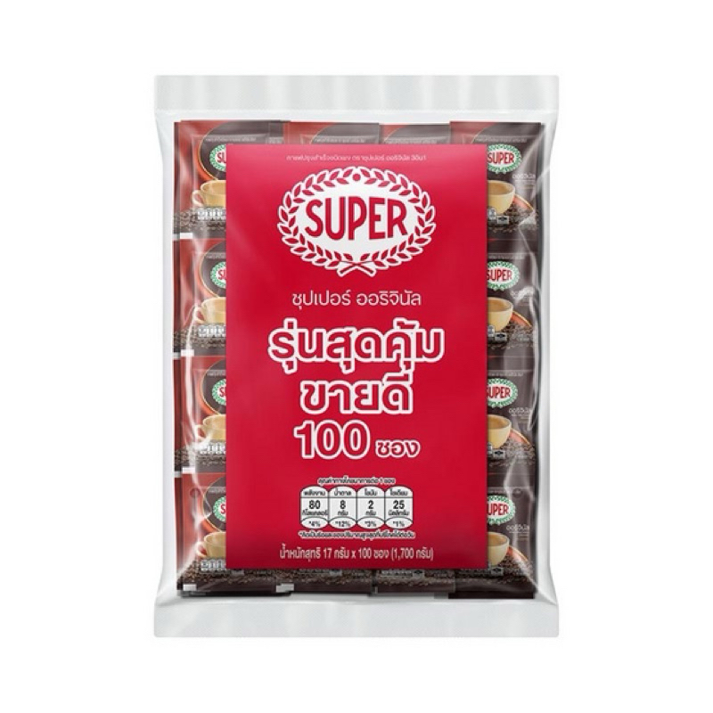 Super ซุปเปอร์กาแฟ กาแฟ3in1 ออริจินัล 1700 กรัม (17 กรัม x 100 ซอง)