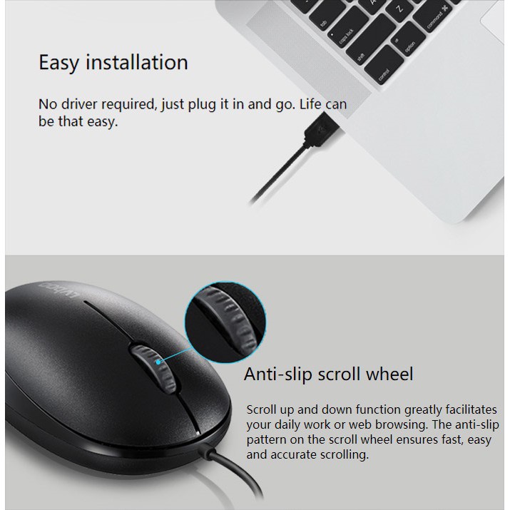 Rapoo N1500 USB Cable Optical Mouse (Black & White) ประกันศูนย์ฯ 2 ปี