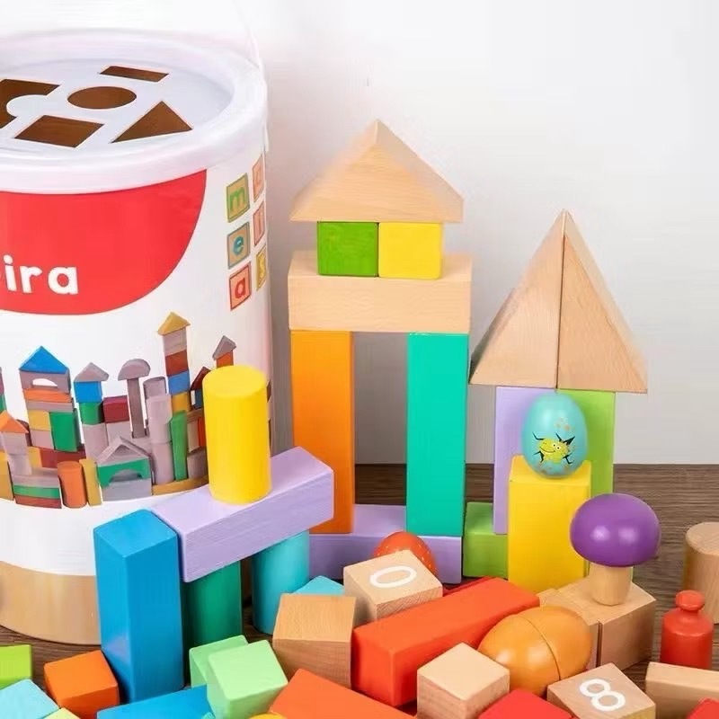 ของเล่นไม้ บล็อคไม้ เสริมพัฒนาการเด็ก เอื้อต่อพัฒนาการ บล๊อคไม้แบบ ถัง 40 pcs แบบถัง